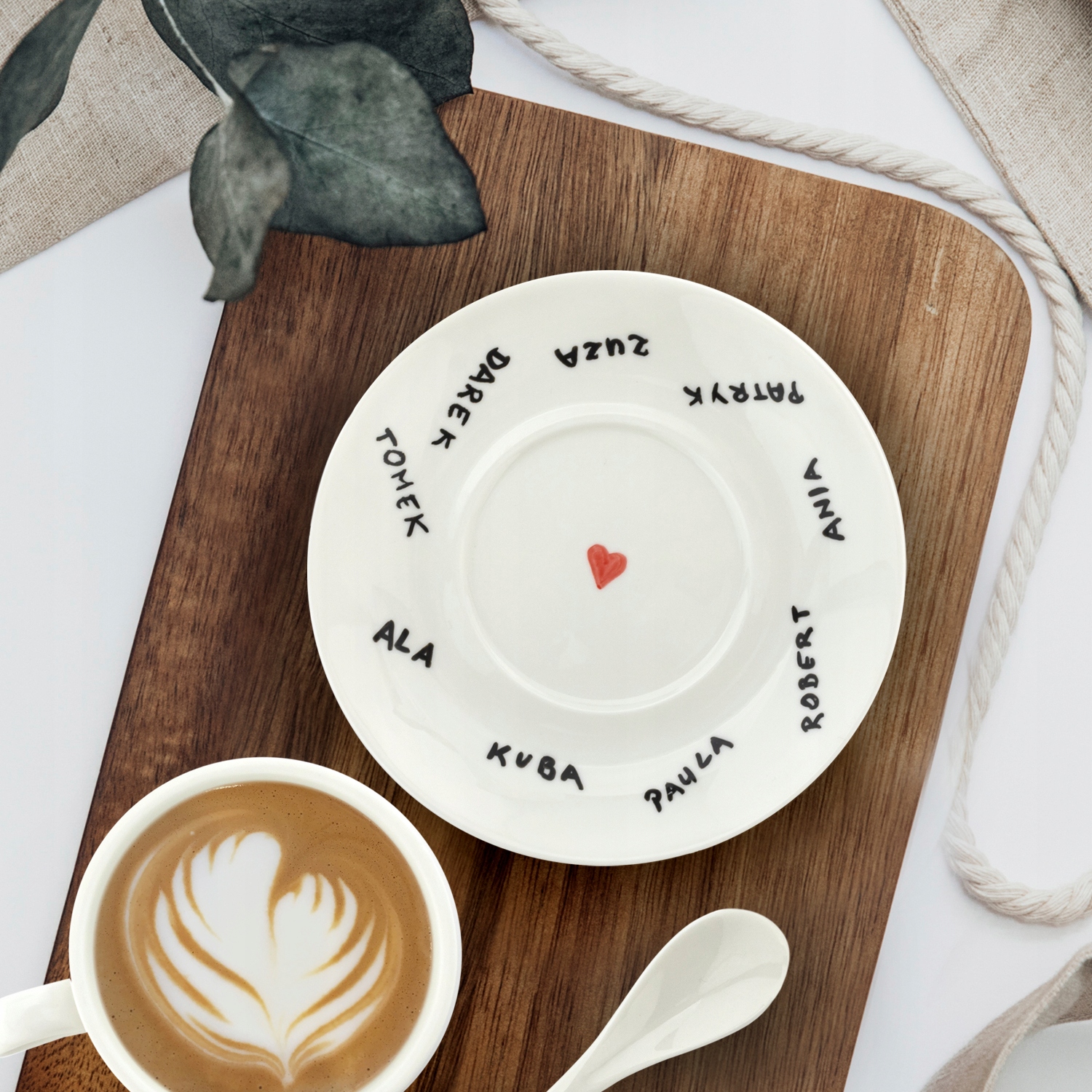 Дайте якомога коротші імена, наприклад, Стась замість Станіслав – із великою кількістю імен вони будуть помітніші на блюдце. Якщо деякі імена повторюються, можна також ввести першу літеру прізвища.