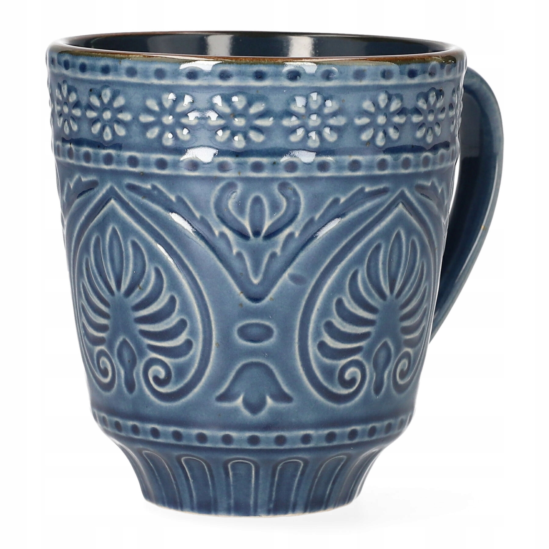INDIE з ручкою має цікаву форму, яка досягається завдяки тому, що її діаметр дуже сильно звужується до дна, що створює враження, що вона стоїть на ніжці. його поверхня вкрита чудовим малюнком. Він ідеально доповнює набір посуду, який ви можете створити з елементами серії INDIE, які доступні поштучно. Однак його можна використовувати і окремо - він чудово підійде як маленький подарунок. Ємність 0,4 л. Він темно-синій, а зовнішня сторона покрита східним візерунком. Його край прикрашений золотистою смугою.