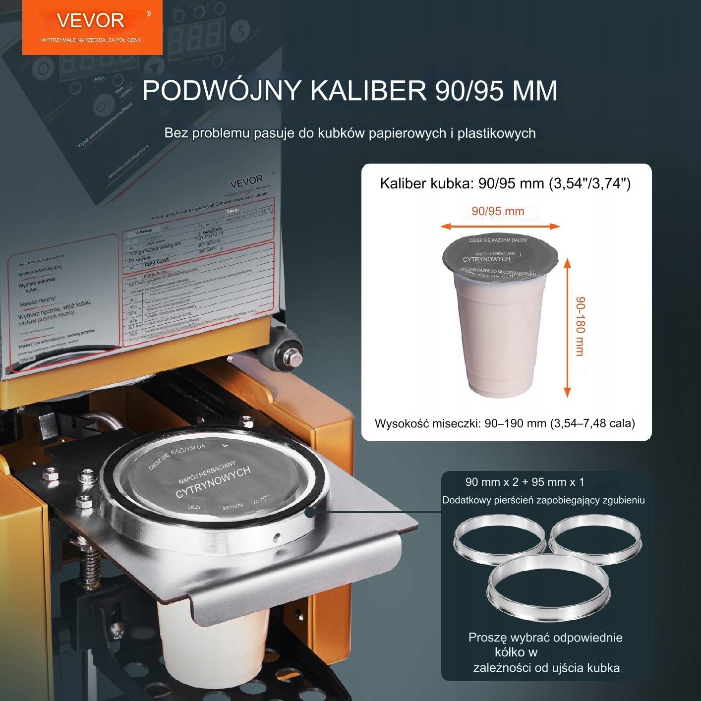 Машина закриття кружки сумісна з чашками з висотою 90 мм до 190 мм і діаметром 90/95 мм. Підтримує чашки, виготовлені з PP, PE, PS та паперу та пластикових матеріалів.