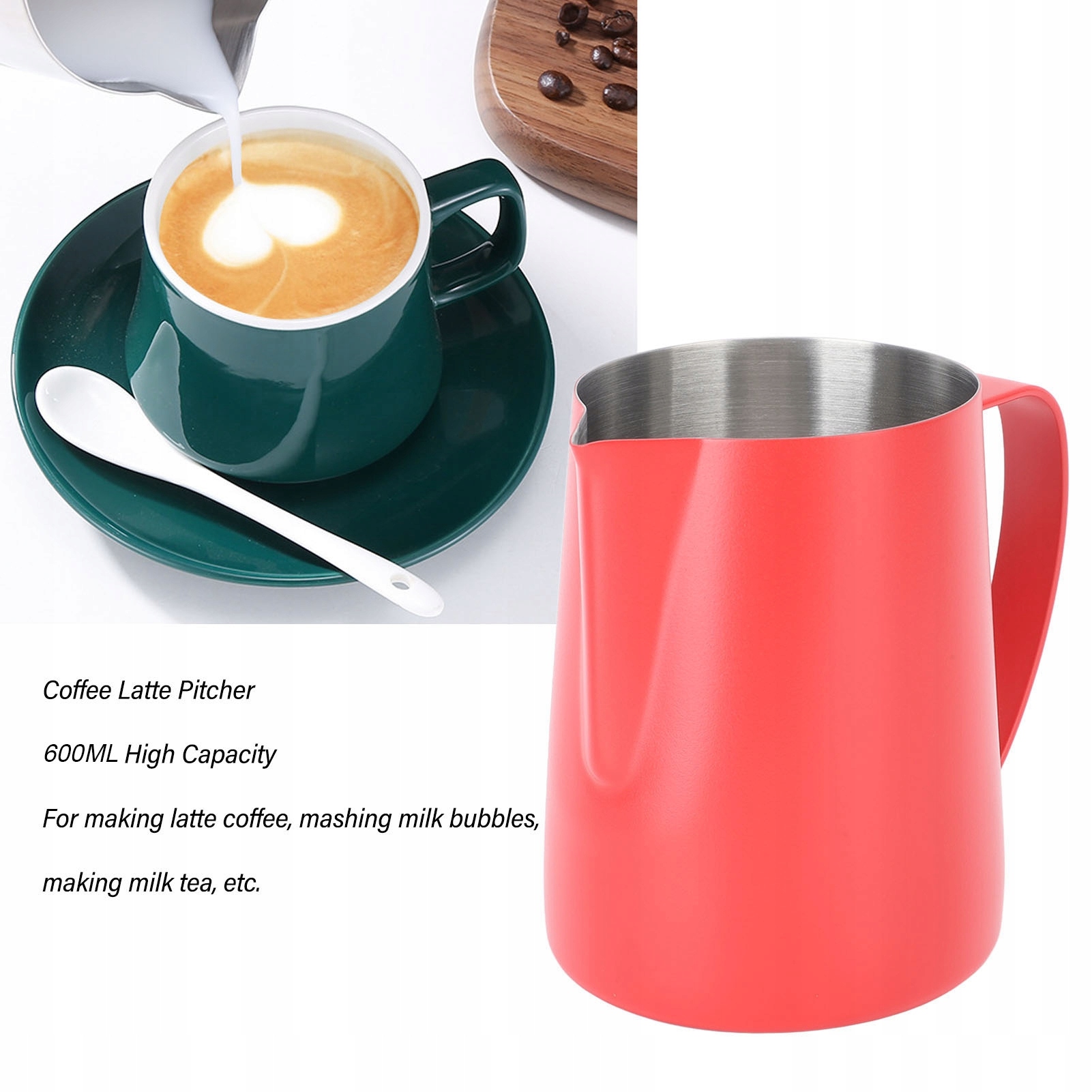 4. Ємність 600 мл: цей дозатор молока має велику місткість 600 мл і може вмістити більше кави з молоком, задовольняючи потреби більшості напоїв.