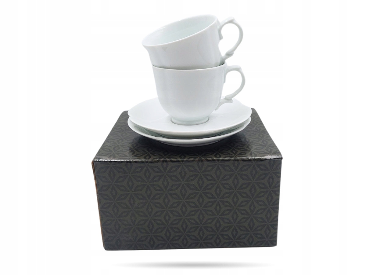 Білі чашки з блюдцями виготовлені з високоякісної порцеляни. Елегантні, з практичною ємністю - вони радуватимуть кожному любителю кави та чаю.