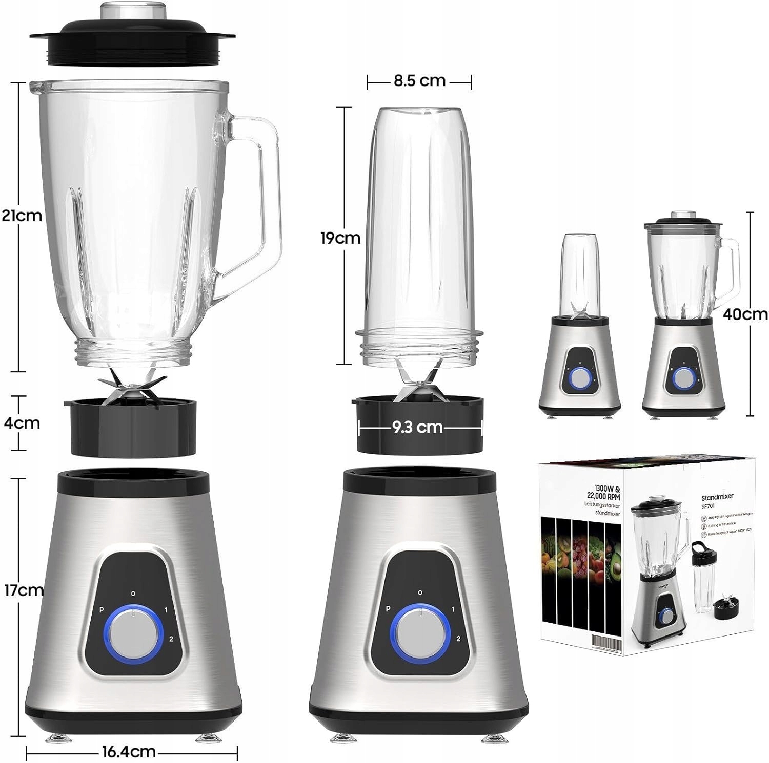 ✅Smoothiemaker 2 in 1: Смузімейкер оснащений термокружкою об'ємом 650 мл і кришками для скляних ємностей об'ємом 1,5 л. Лезо з 6 лезами для скляної тари ефективно подрібнює лід і забезпечує більш тонкий ефект змішування. Лезо з 4 лезами для термокружок дозволяє змішувати безпосередньо в кухлі, забезпечуючи комфорт у дорозі. Блендер Smoothiemaker ідеально підходить для індивідуального та сімейного використання.