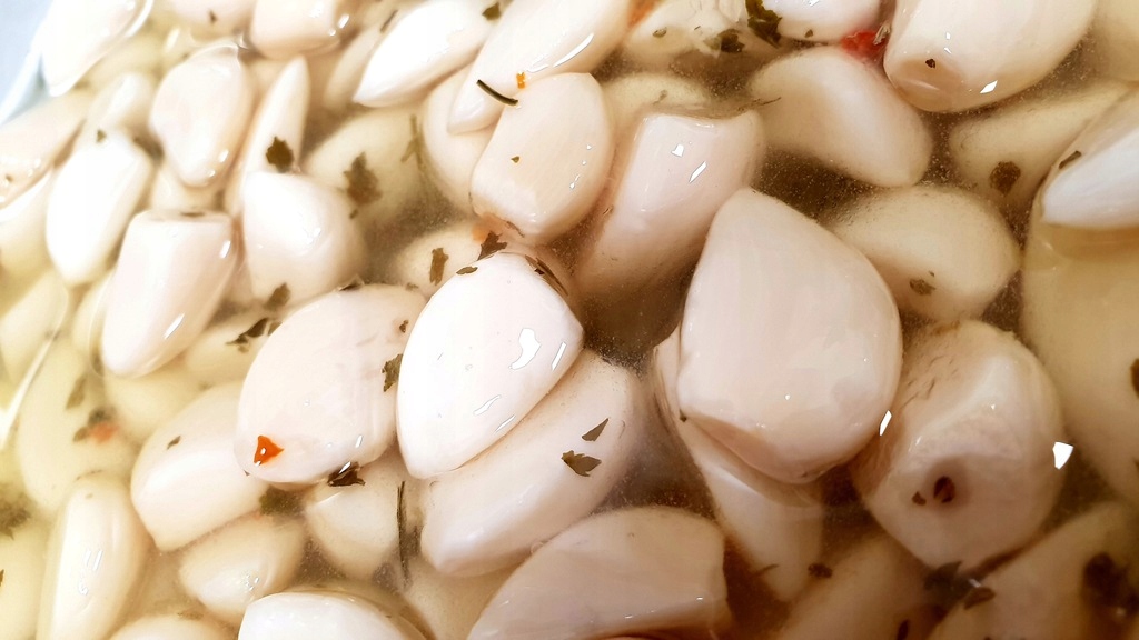 Сицилійський делікатес :) Часник із зеленню в маринаді з соняшникової олії. Натуральний продукт, без консервантів.