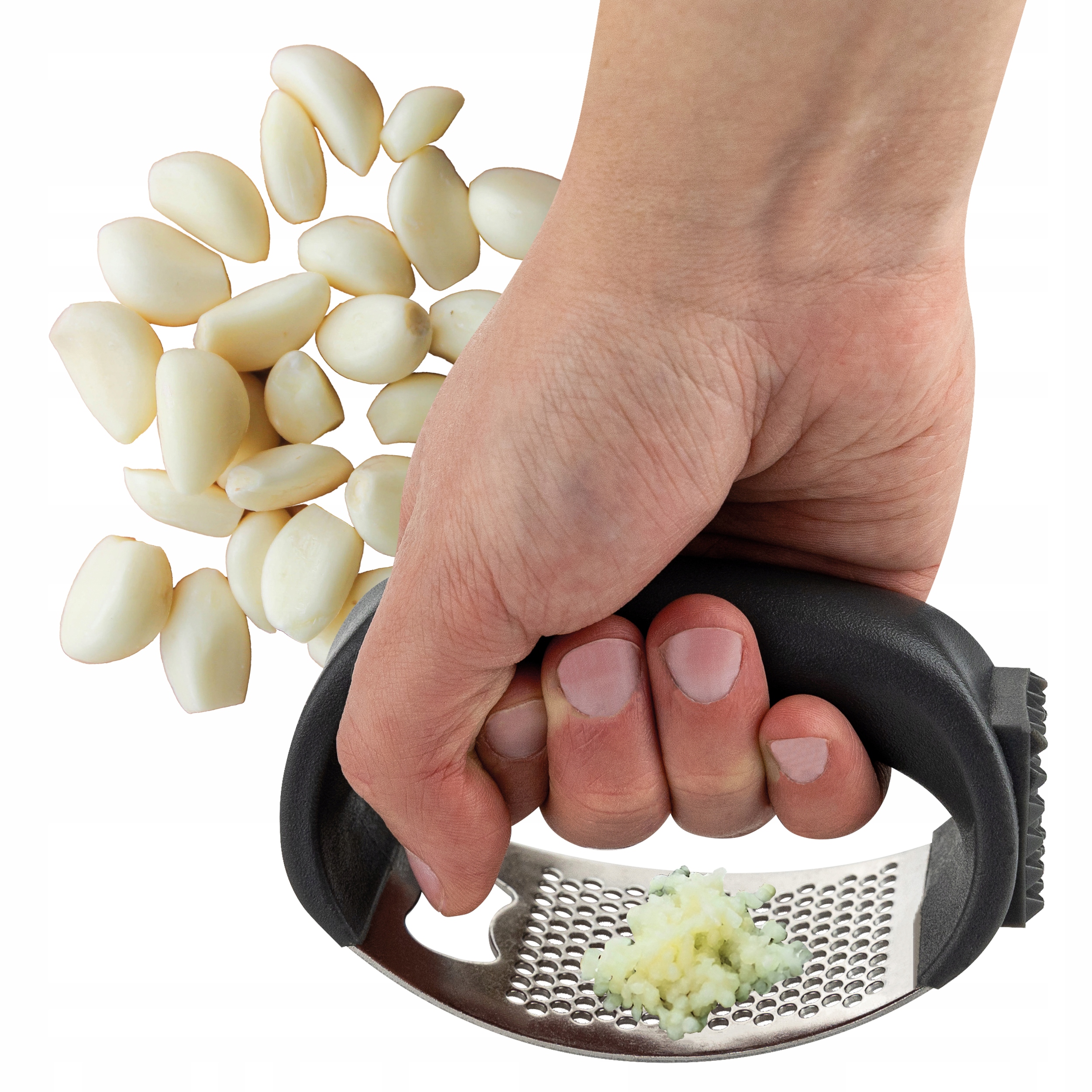 ✅ Користуватися пресом дуже просто. Просто покладіть часник на рівну тверду поверхню та розчавіть його за допомогою преса.