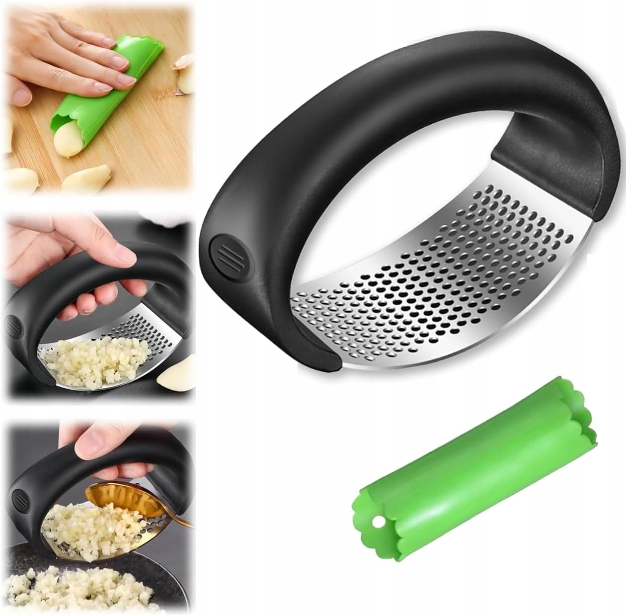 - Прес для часнику з нержавіючої сталі: прес для часнику має зручну ручку, яка зменшує тиск на пальці та зап’ястки. Простим поворотним рухом часник можна легко нарізати або подрібнити за короткий час, що зробить вашу кухонну роботу легшою та приємнішою
