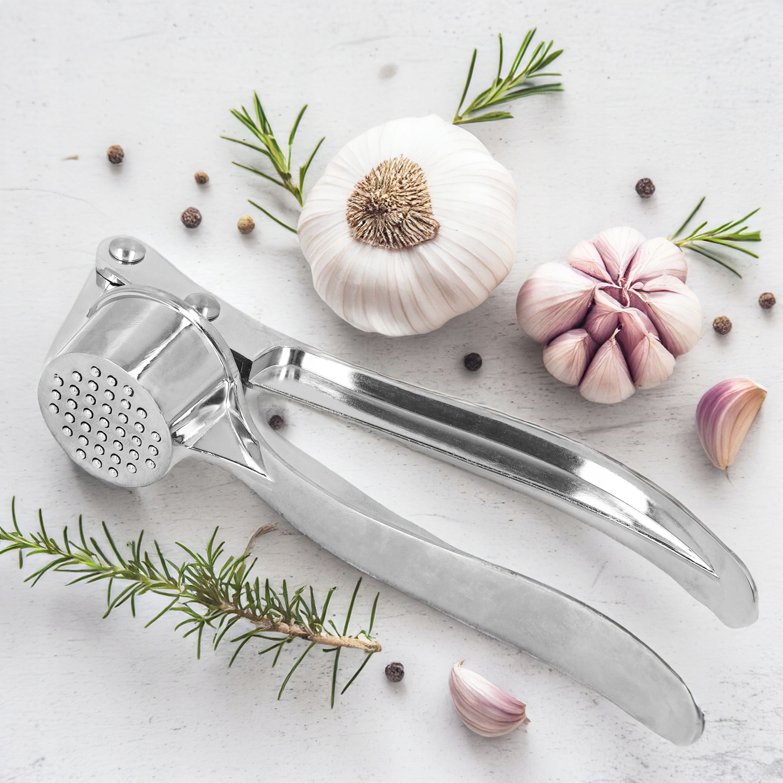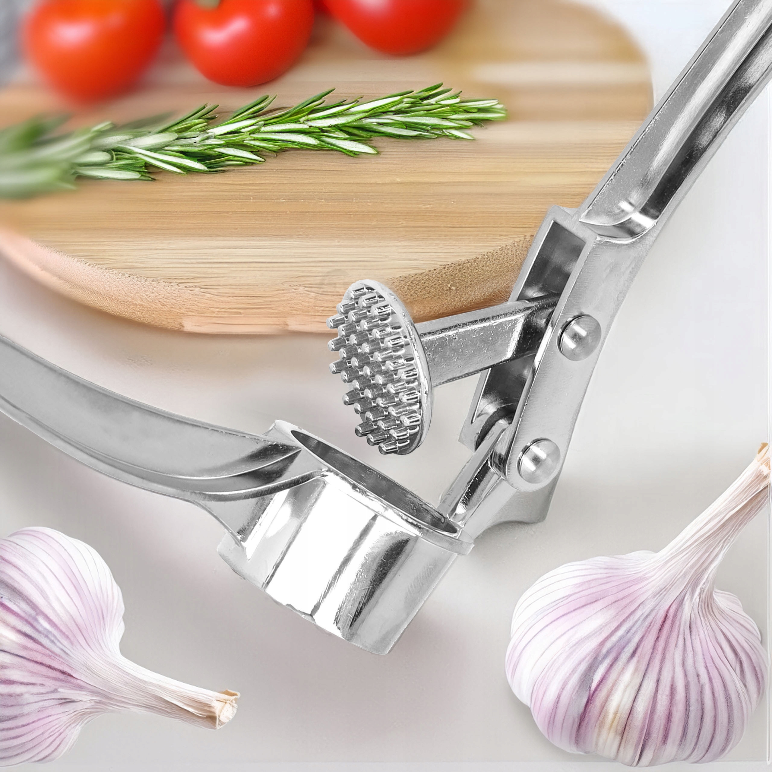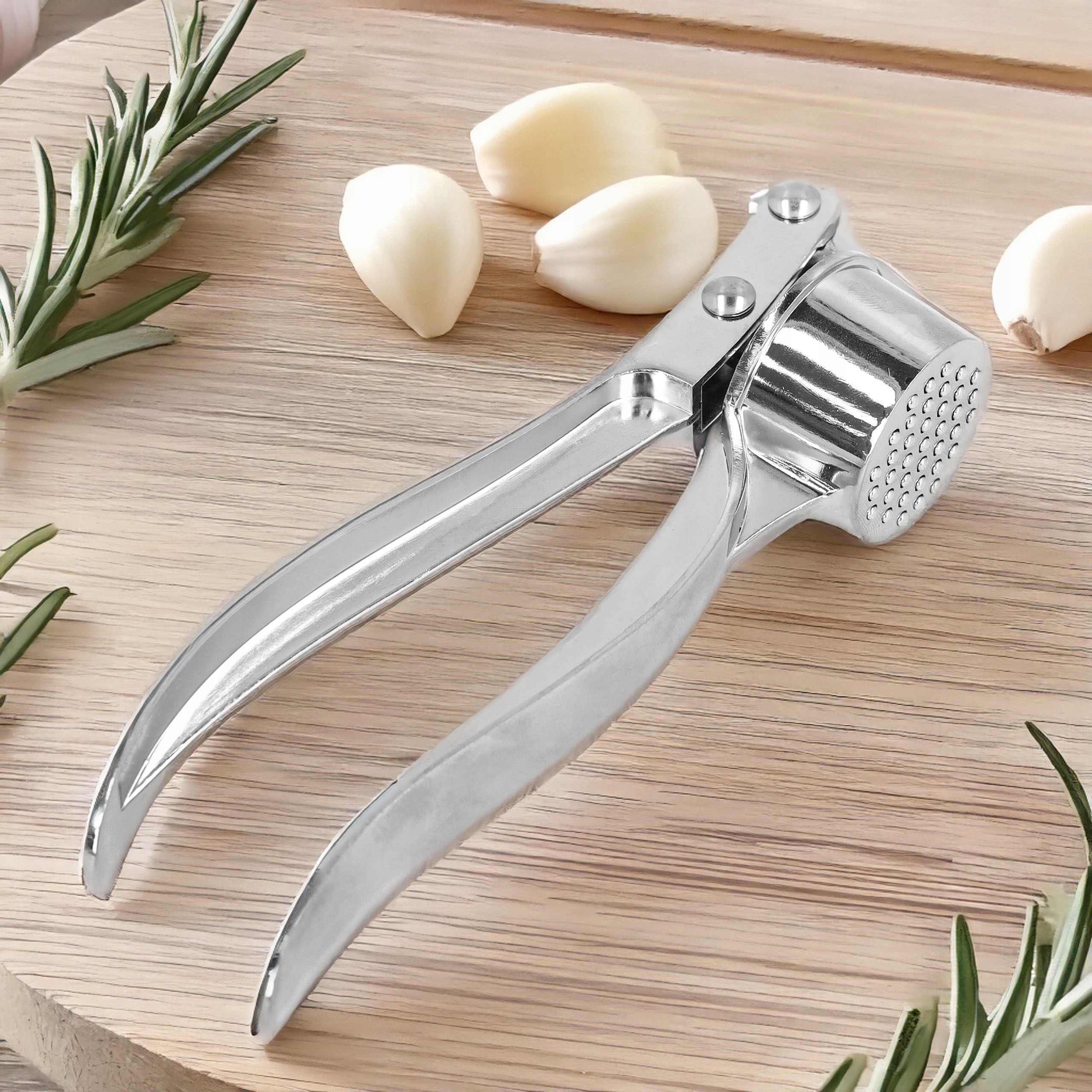 Зроблений з блискучого хромового металу часниковий прес не тільки виглядає красиво на кожній кухні, але й є надзвичайно міцним . Його ергономічний дизайн гарантує комфорт використання навіть при частому використанні.