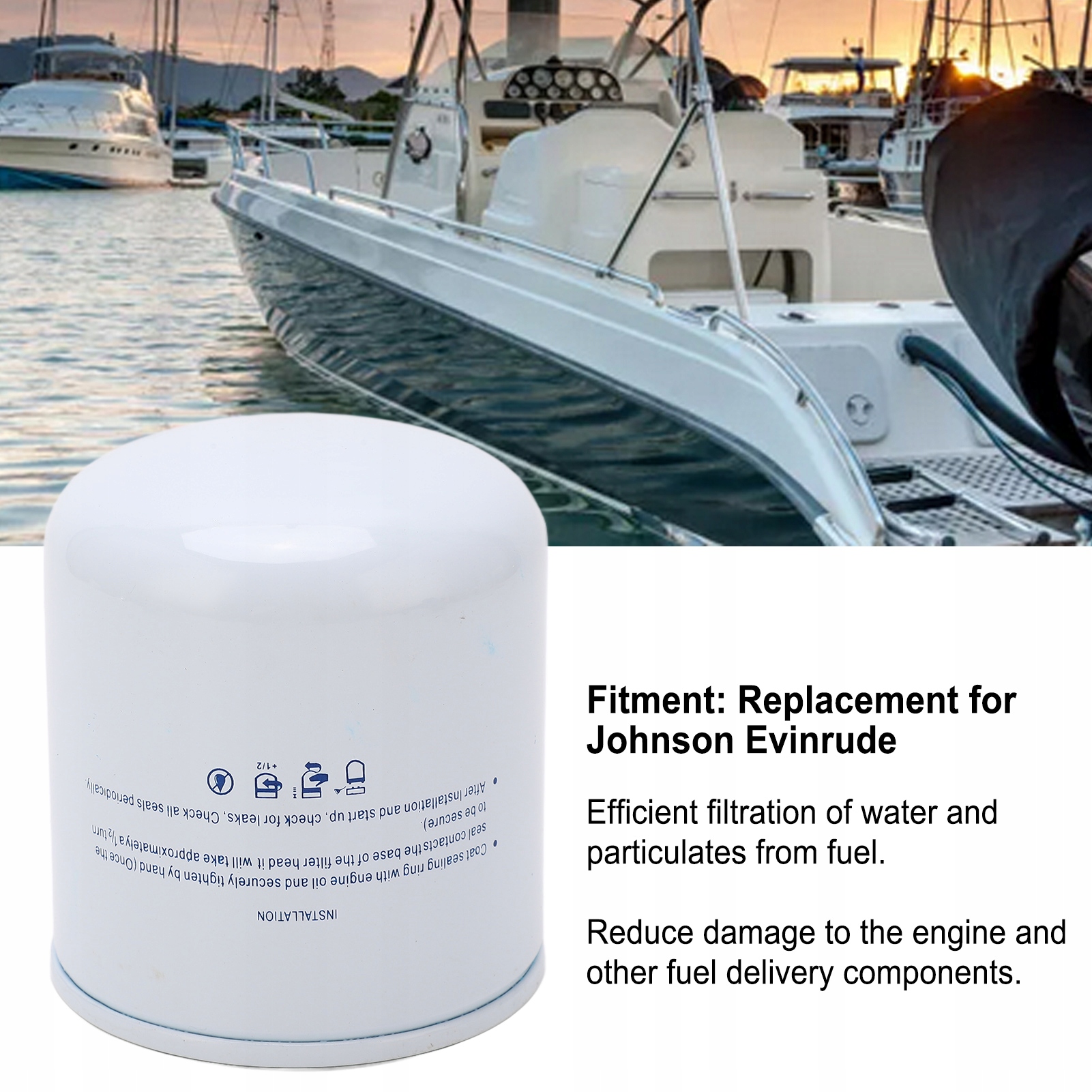 Функція:1. Застосовна модель: паливний водовідділювальний фільтр, заміна човнового двигуна Johnson Evinrude, підтвердьте модель, щоб забезпечити точне встановлення.