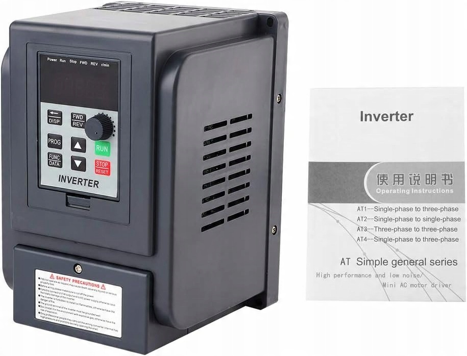 ПАРАМЕТРИ -- Модель: AT4-1500X; Вхідна напруга: однофазне 220VAC; Вихідна напруга: трифазне 380VAC; Напруга живлення: 220VAC 50/60Hz; Відповідна потужність двигуна: 1,5 кВт; Номінальний струм: 8А; Максимальна вихідна частота: 400 Гц; Режим керування: контур керування V/F; Режим регулювання вихідної напруги: ШІМ