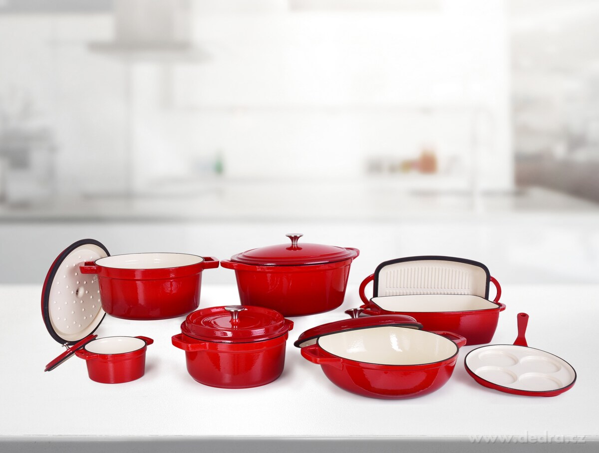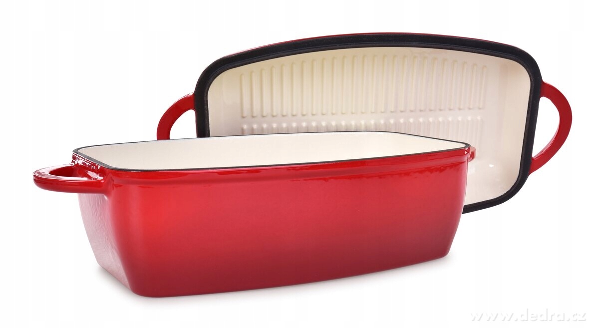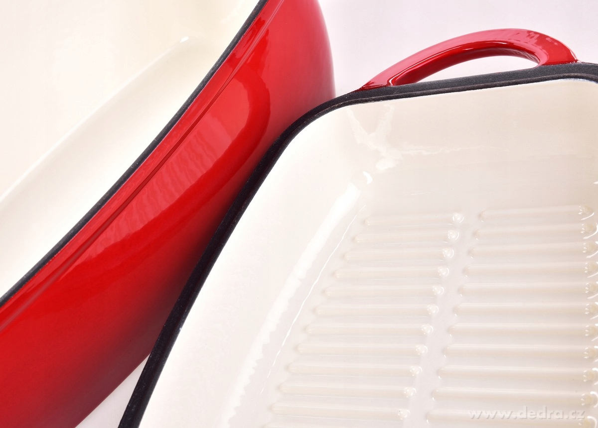 Чавунна жаровня DEDRA 41см з кришкою гриль 2в1, IRON MASSIVE, червоний