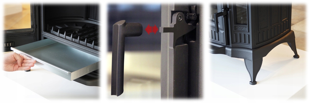 Ящик/контейнер для золи для збору залишків спаленої деревини та рухома решітка, яка полегшує видалення золи.