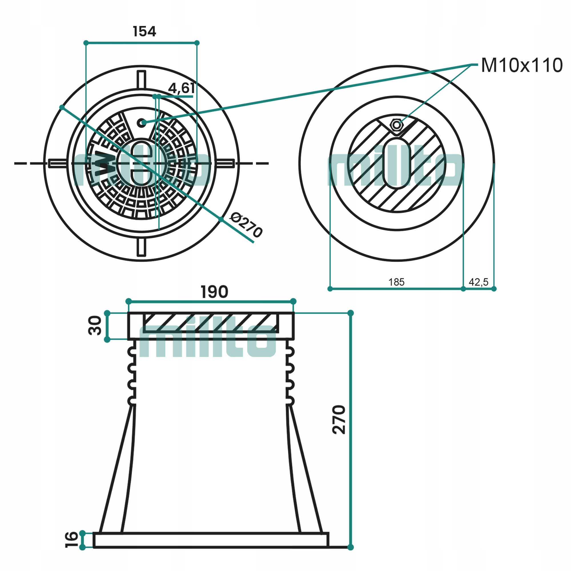 Оглядова камера Millto оснащена чавунним люком. Сам корпус колодязя виготовлений з поліпропілену. Такий тип виготовлення забезпечує виняткову стійкість до будь-яких пошкоджень. Продукція виготовлена відповідно до стандартів, що підтверджено сертифікатом на будівельний знак Б