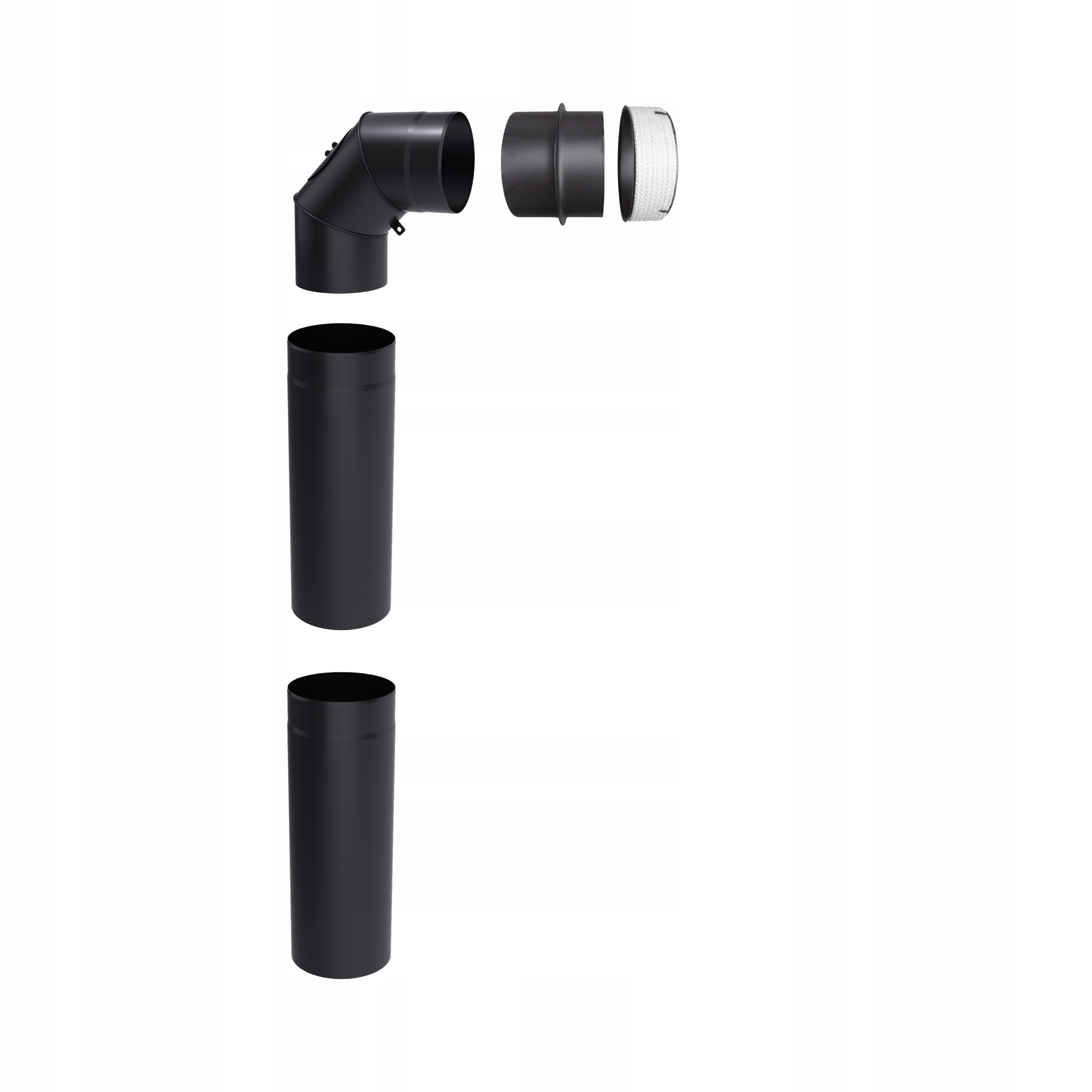 Коліно, що регулюється під кутом 90°, 3-сегментне для підключення топки для дров’яних камінів до існуючих димоходів.