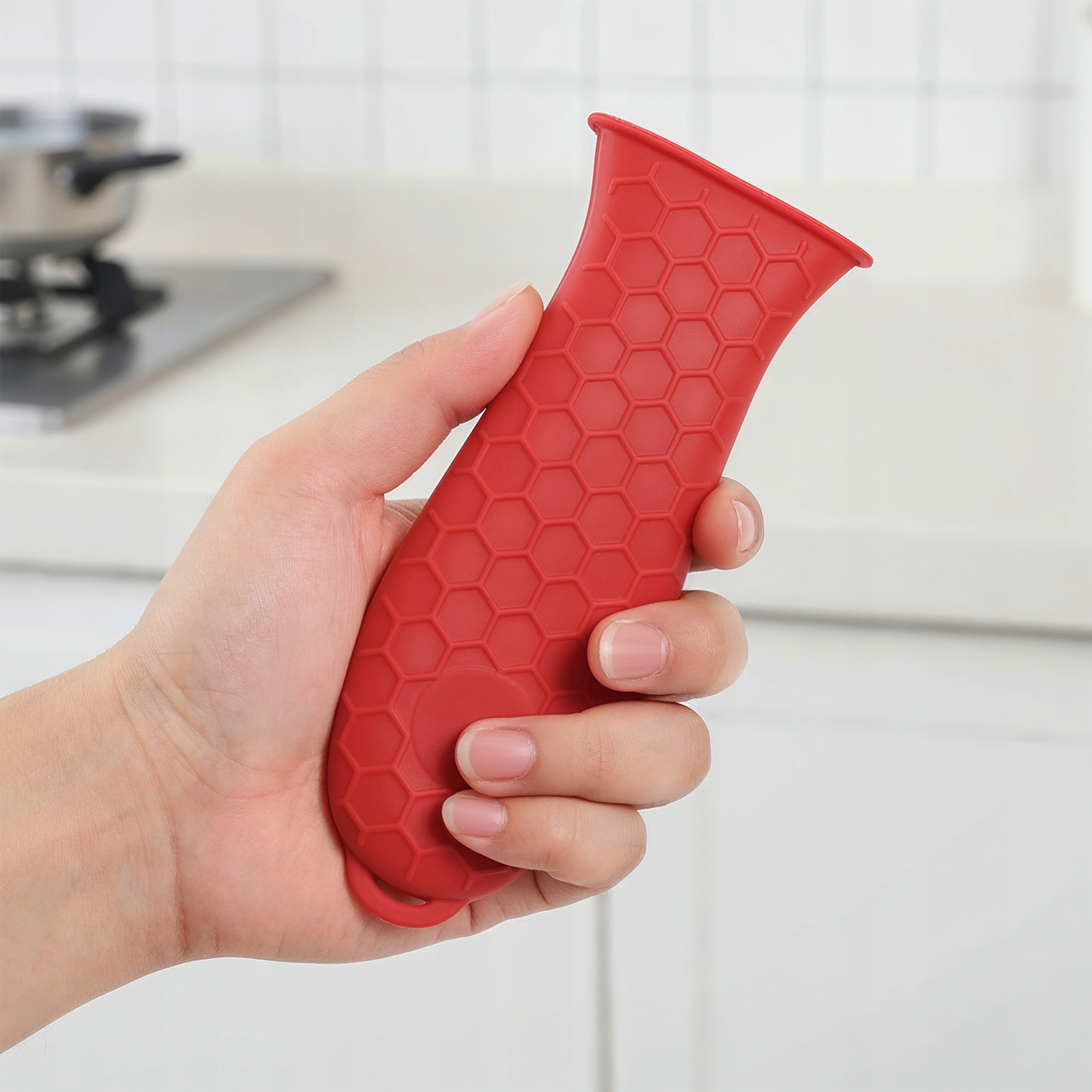 Захищає ваші руки від гарячої ручки сковороди, забезпечуючи повний комфорт і безпеку. Завдяки цьому ви можете безпечно переносити гарячі страви прямо з плити на стільницю або стіл, не турбуючись про температуру.