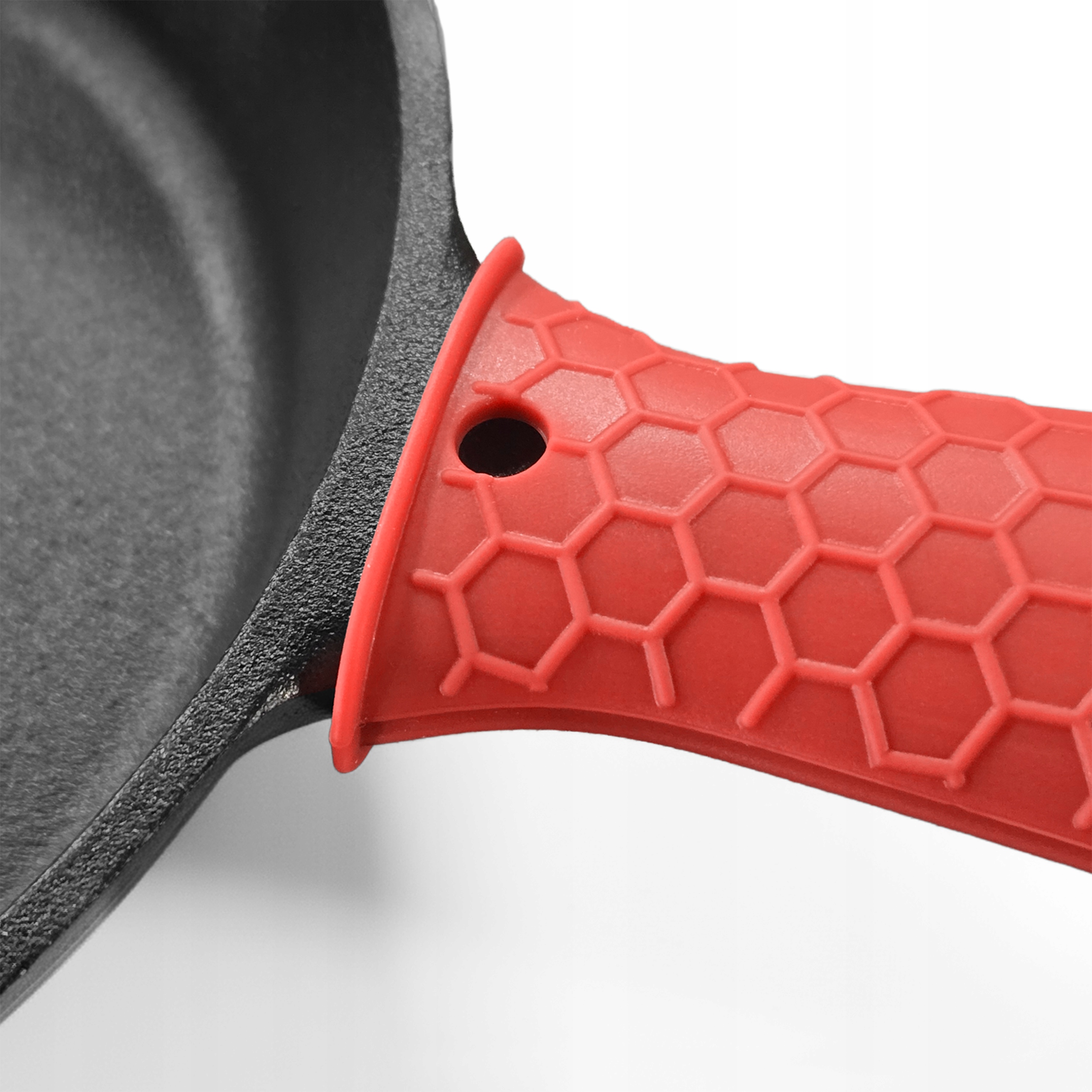 Він виготовлений із гнучкого, стійкого до високих температур силікону, який ефективно ізолює тепло та гарантує міцне зчеплення навіть із важкими чавунними сковорідками.