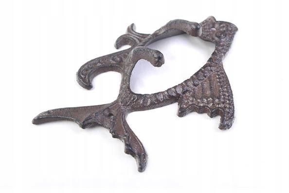 Міцний чавунна вішалка у формі риби з двома гачками, це ідеальний елемент декору та організації простору у вашому домі. Виготовлена з високоякісного чавуну, ця чарівна стійка не тільки додасть шарму вашому інтер’єру, але й стане практичним рішенням для зберігання рушників, сумок та багатьох інших речей.