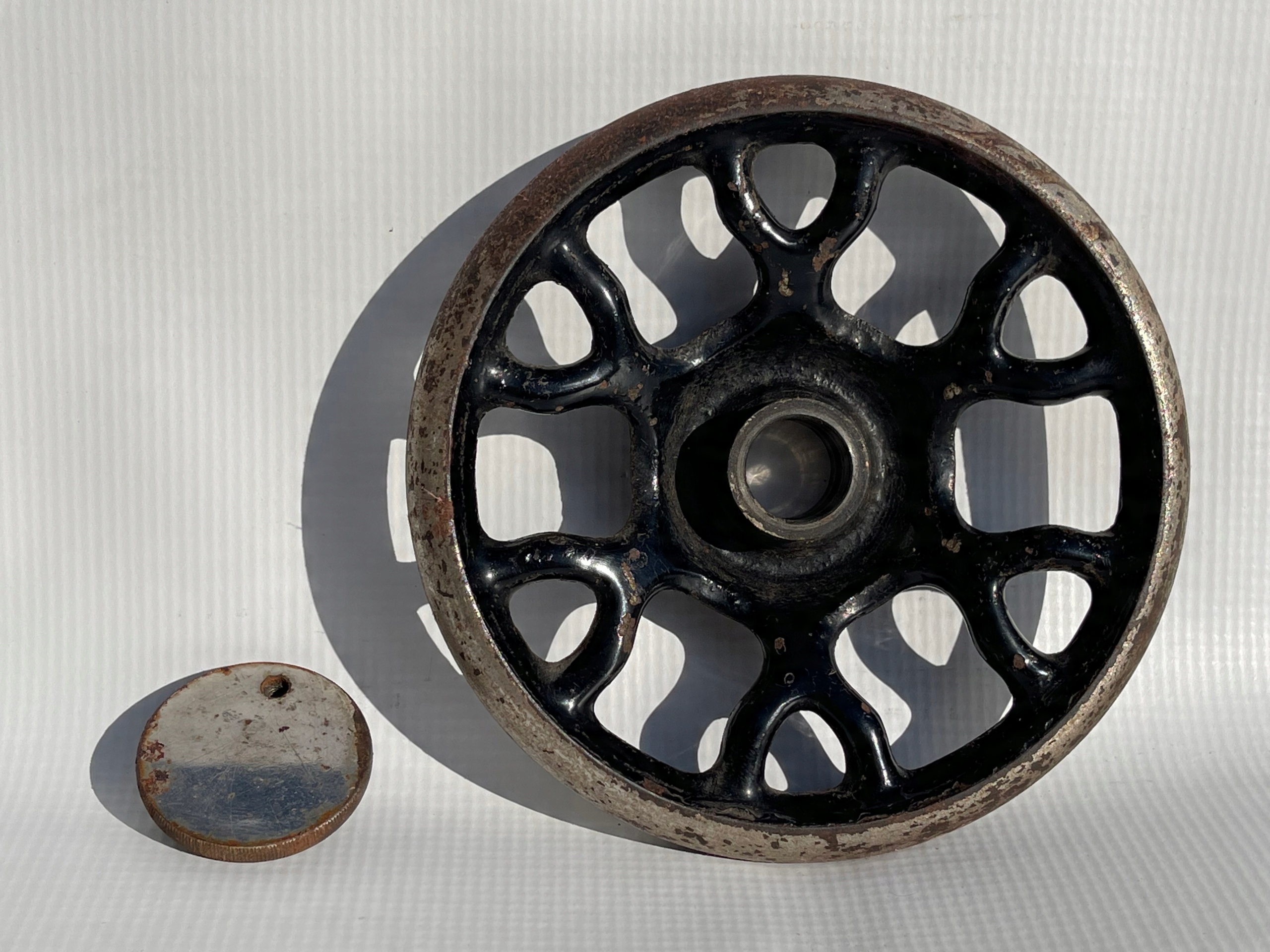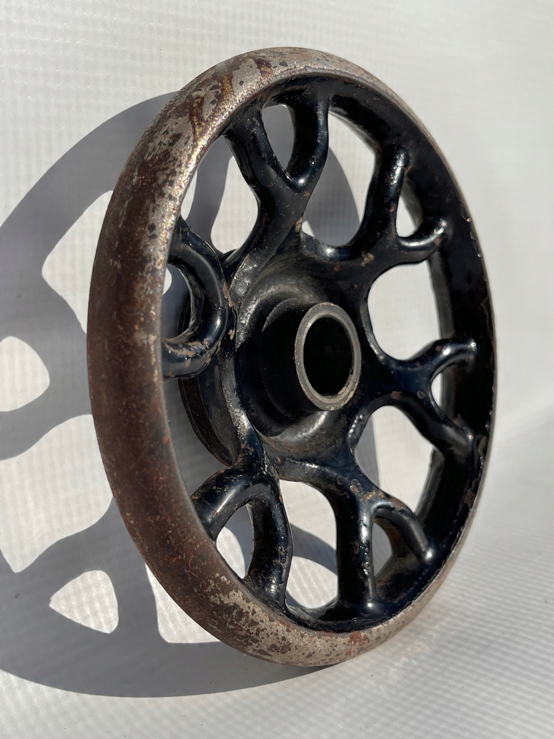 Предмет продажу чавунне колесо приводне від старої швейної машинки. Цікавий візерунок, гарно оформлено. Колесо ціле, без тріщин.