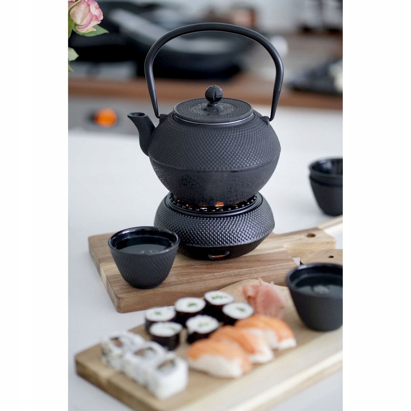 Чарний чайник Konighoffer Hanako 0,8 л із заваркою виготовлений із чавуну. У комплект також входить заварка з нержавіючої сталі. Завдяки цьому ви можете відокремити трави від окропу і швидко перервати процес приготування есенції. Внутрішня частина чайника покрита нетоксичною чорною емаллю. Це полегшить вам догляд і забезпечить користь настою. Модель довго зберігає тепло. Можна поставити на грілку (до 60 хвилин!). Велика ручка чайника дозволяє легко його переносити і розливати чай по кухлях і чашках. Кришка корпусу забезпечує ефективне регулювання пари всередині. Продукт рекомендований Ewa Wachowicz. Як амбасадор бренду Konighoffer, вона тепло та з усмішкою рекомендує його для домашнього використання. Разом з ним ви отримаєте свій рецепт для дому. Це один з найкращих варіантів у цій категорії!