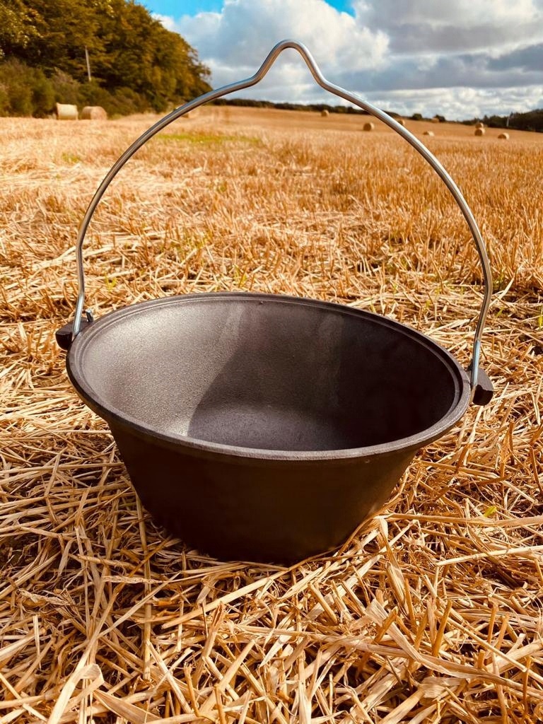 Угорський казан, виготовлений з високоякісного чавуну в Польщі, ретельно оброблений і обпалений при високій температурі, що впливає на його стійкість і кліматичні фактори.