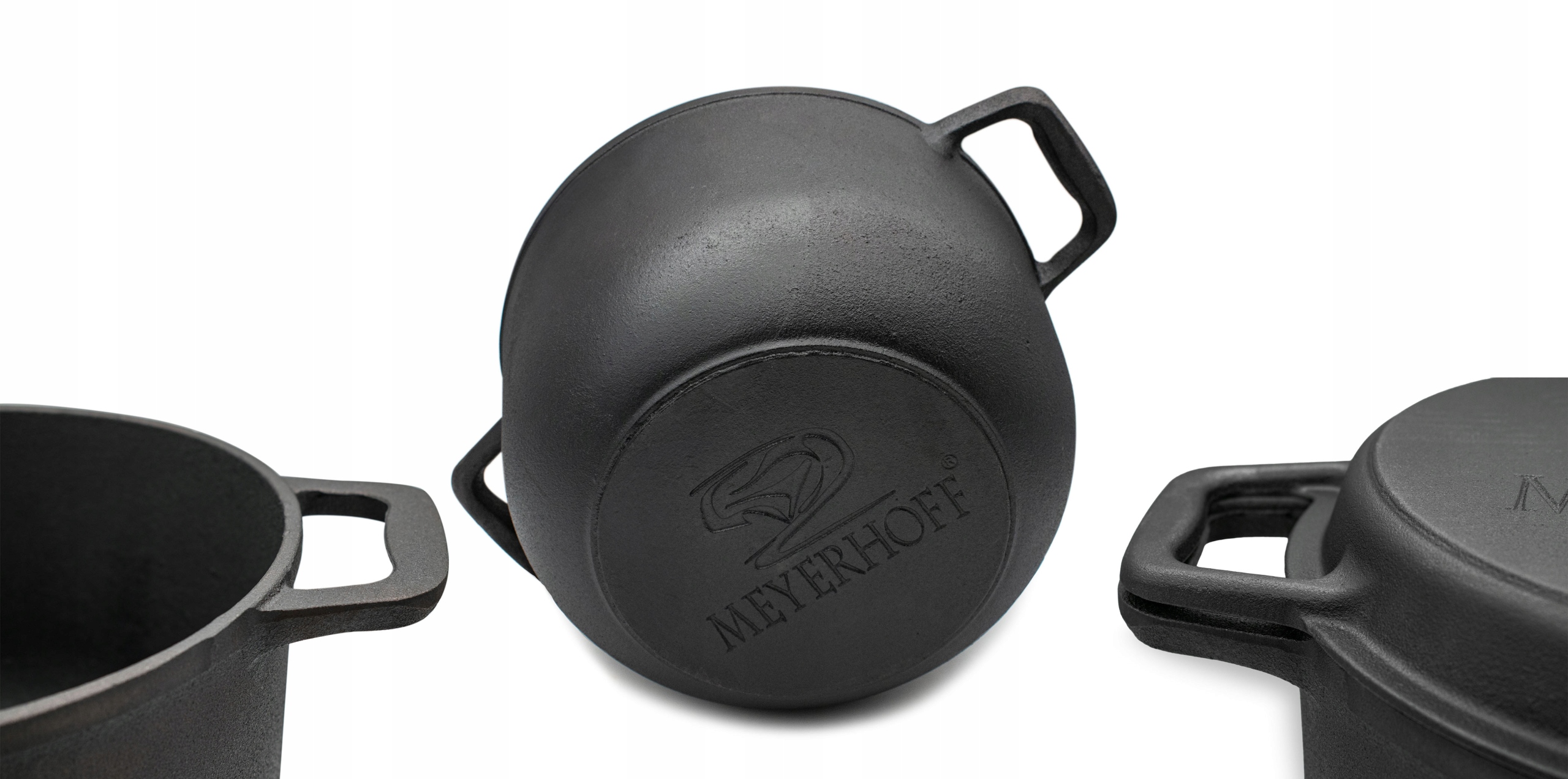 Оригінальний котел Meyerhoffзроблений з найякіснішого чавунного сплаву, стійкого до найвищих температур. Казан має зручні ручки, які полегшують перенесення каструлі та кришки. Унікальний набір для запікання картоплі або інших страв складається з трьох частин. Ніжки у вигляді підставки, каструлі і кришки, яка також виконує функцію чавунної решітки. Завдяки тисненню на кришці ви можете бути впевнені, що купуєте оригінальний і безпечний продукт.