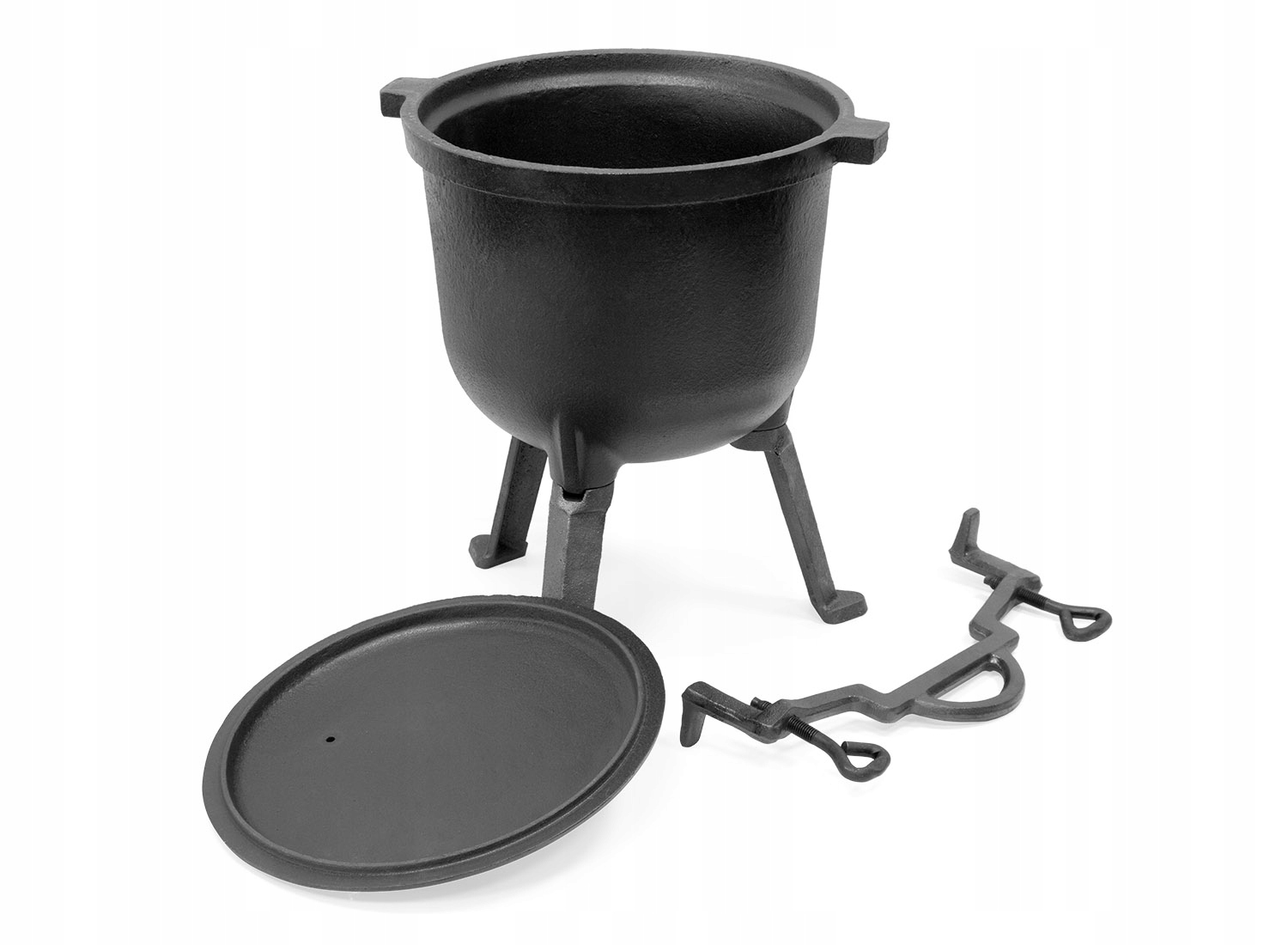 Оригінальний казан Meyerhoffвиготовлений з найякіснішого чавунного сплаву, стійкого до найвищих температур. Ця компанія першою застосувала спеціальний вентиляційний отвір в кришці, який регулює тиск всередині казана, що робить його на 100% безпечним. Казан можна стояти прямо на вогні, а завдяки зручній ручці його можна також підвісити над вогнем. Виріб також має роз'ємні ніжки, тому казан можна поставити в камін або прямо у вогнище.