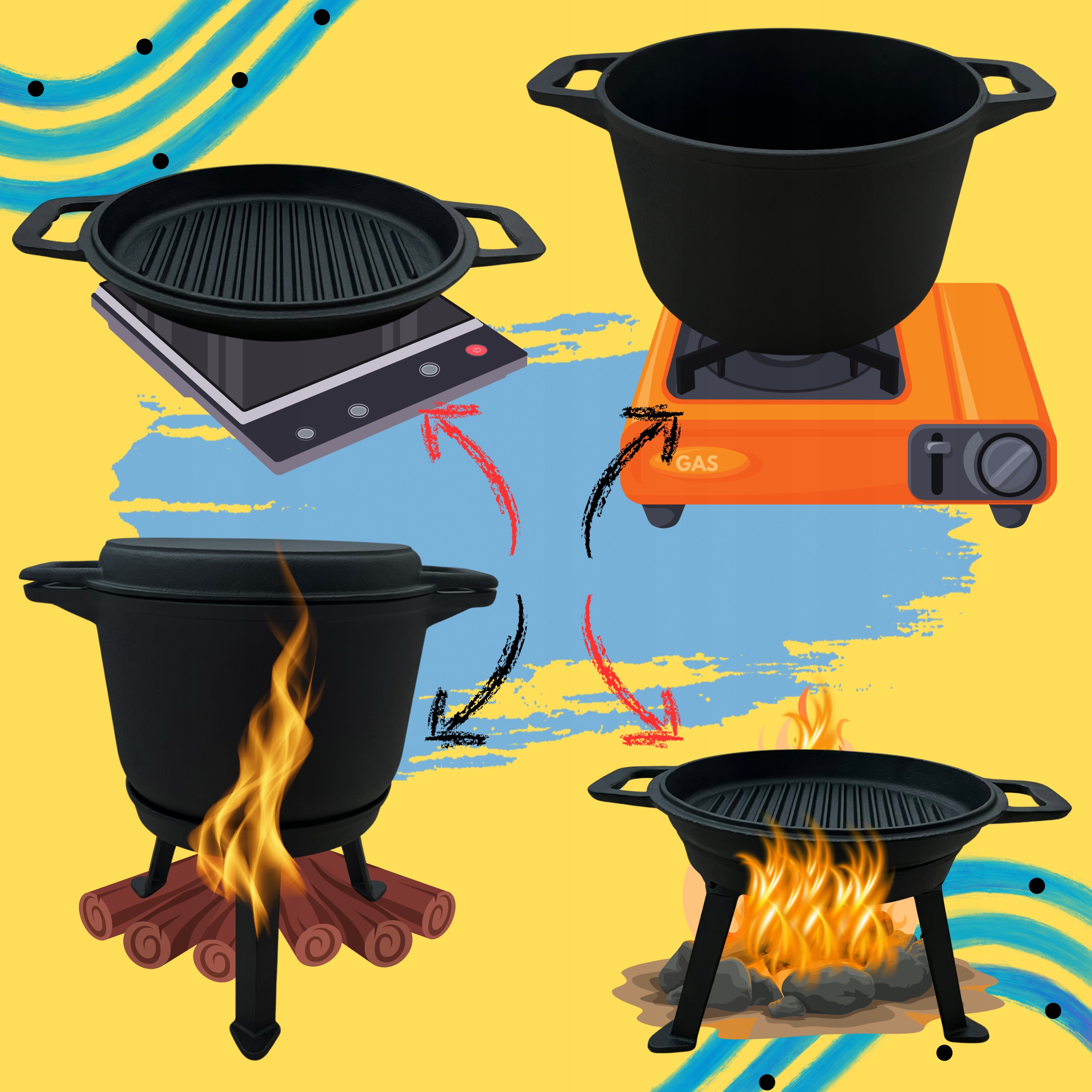 ✅ Універсальність - кришка, яка також служить сковородою для гриля, пропонує багато кулінарних можливостей.
