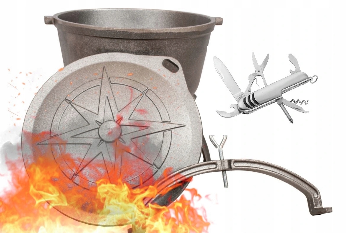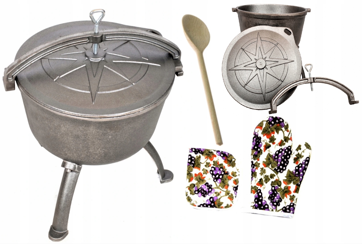 Каструля мисливська чавунна, 10л. Якісне польське лиття забезпечує надійність і безпеку використання. Традиційно використовується для приготування хлібобулочних виробів (тушковане м’ясо, смажене м’ясо, ковбаси, але його також можна використовувати для інших кулінарних завдань.