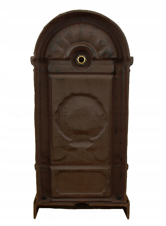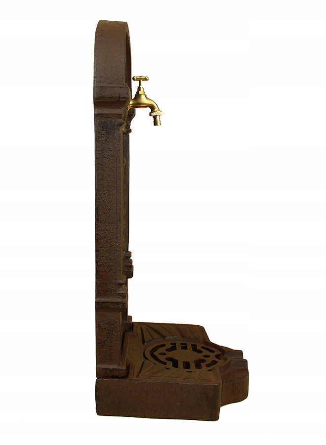 Стоячий злив (раковина) з краном коричневого кольору з потертостями, прикрашений черепашкою.