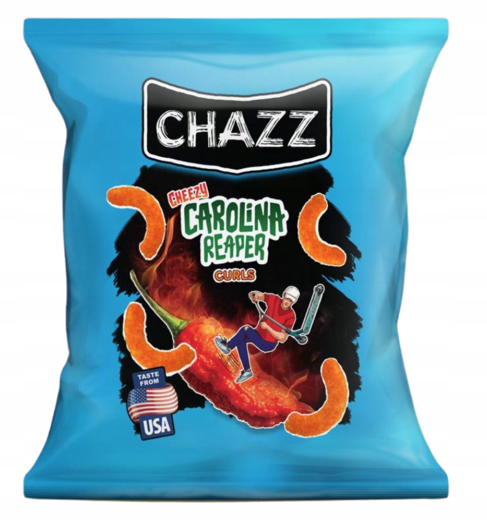 CHAZZ Cheezy Carolina Reaper Curls — це закуска для справжніх крутих хлопців! Ці хрусткі кукурудзяні палички поєднують інтенсивний сирний смак із пекельним смаком перцю Carolina Reaper – одного з найгостріших у світі. Правильно приправлені та хрусткі запечені, вони забезпечують не тільки вогонь, але й приємну сирну глибину. Ідеально підходить для випробувань на мужність, вечірок або як виклик друзям! Ви наважилися спробувати?