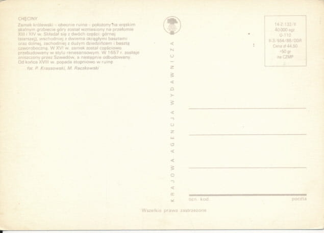 Просматривая «Chęciny Castle - 033228», вы можете быть уверены, что данный товар из каталога «Центральная Польша» будет доставлен из Польши и проверен на целостность. В цене товара, указанной на сайте, учтена доставка из Польши. Внимание!!! Товары для Евросоюза, согласно законодательству стран Евросоюза, могут отличаться упаковкой или наполнением.