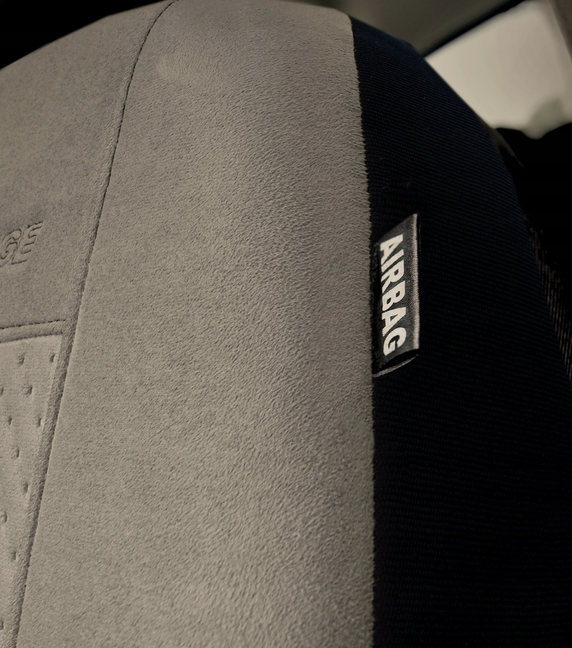 Завдяки швам AIRBAG чохли підходять для автомобілів з бічними подушками безпеки в сидіннях, а також для стандартних сидінь. Завдяки використанню спеціального шва вони повністю закривають боки сидінь, не порушуючи роботу ПОДУШОК AIRBAG.