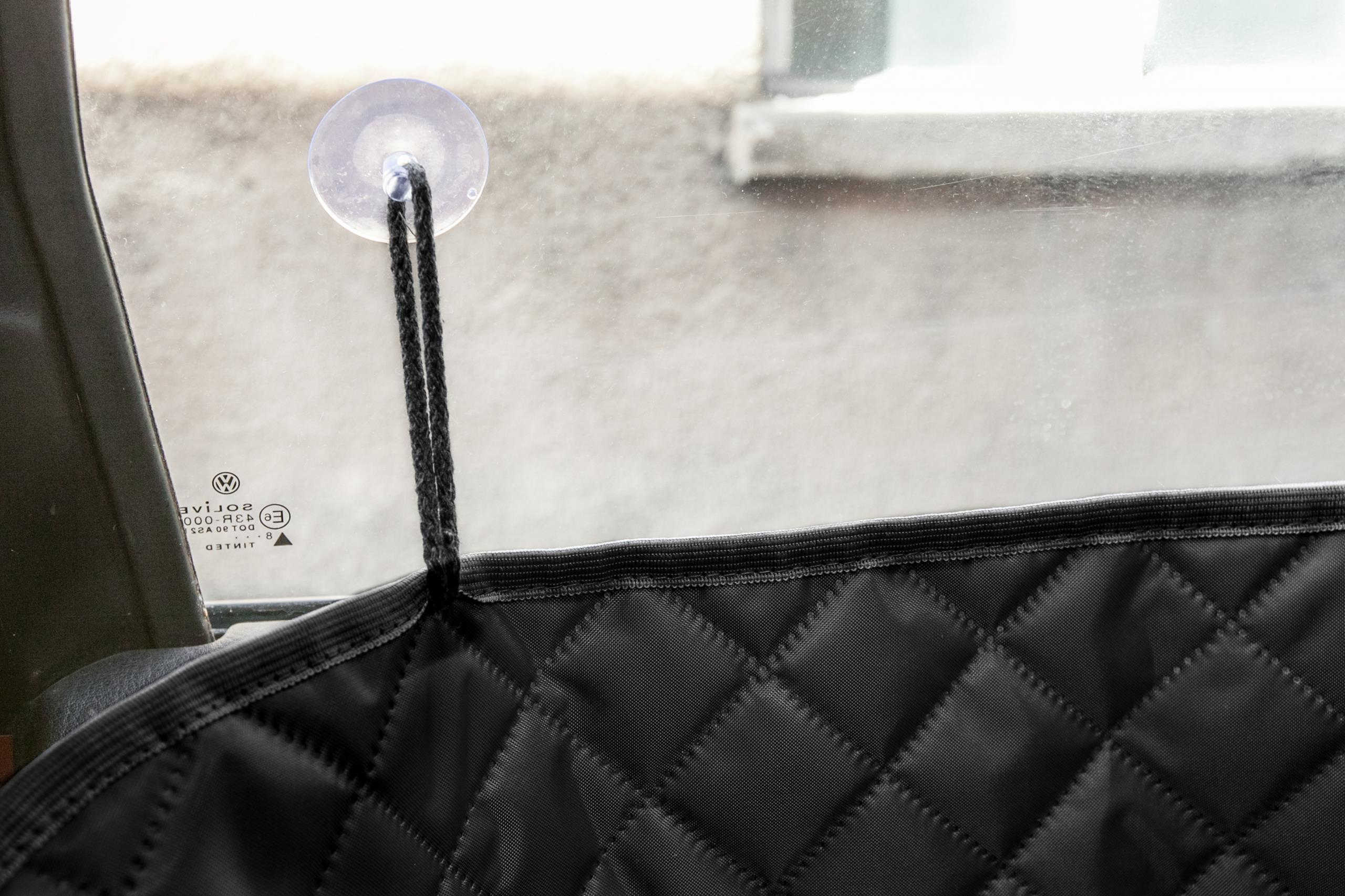 Чохол має бортики, які захищають двері автомобіля від пошкоджень і бруду. Вони кріпляться за допомогою присосок, приклеєних до вікон. Виріб також має перегородку на липучці, яка ділить його навпіл, тому його можна встановити на переднє сидіння або використовувати на задньому сидінні, закриваючи лише його половину, щоб один або два додаткових людини могли сидіти ззаду. p>
