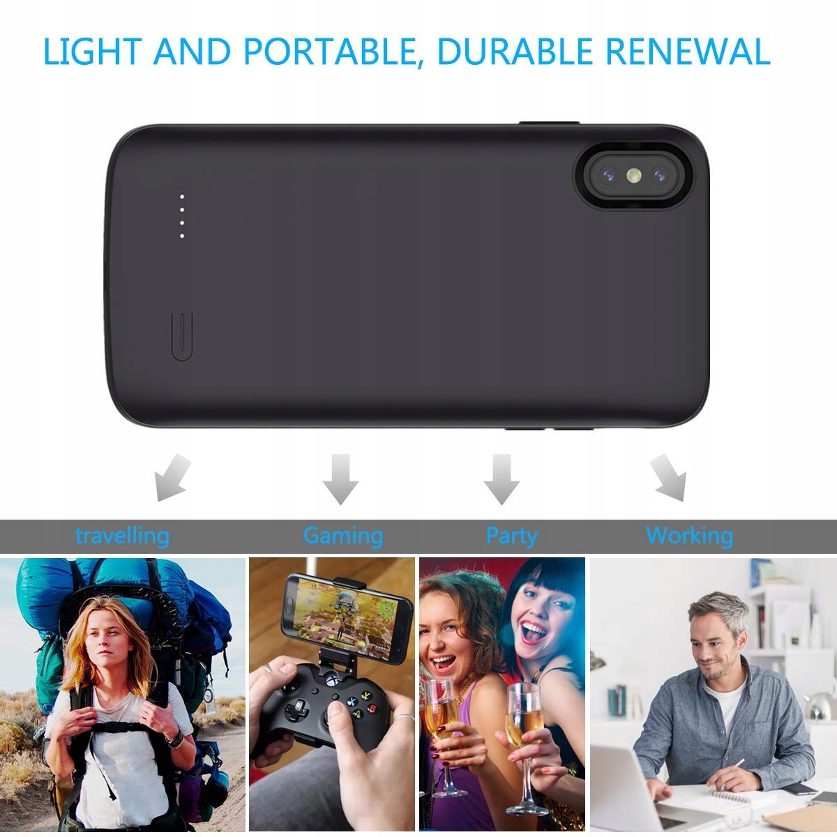 ГАРАНТІЯ ПОВЕРНЕННЯ ГРОШЕЙ: підтримка в режимі очікування 7*24, безпроблемна 100% гарантія повернення грошей, 1-річна гарантія на заміну та довічна технічна підтримка. Кожен пакет містить: 1* футляр для зарядки iPhone XS Max, 1* інструкцію Миттєво перевіряйте стан живлення за допомогою вбудованого 4-світлодіодного індикатора стану