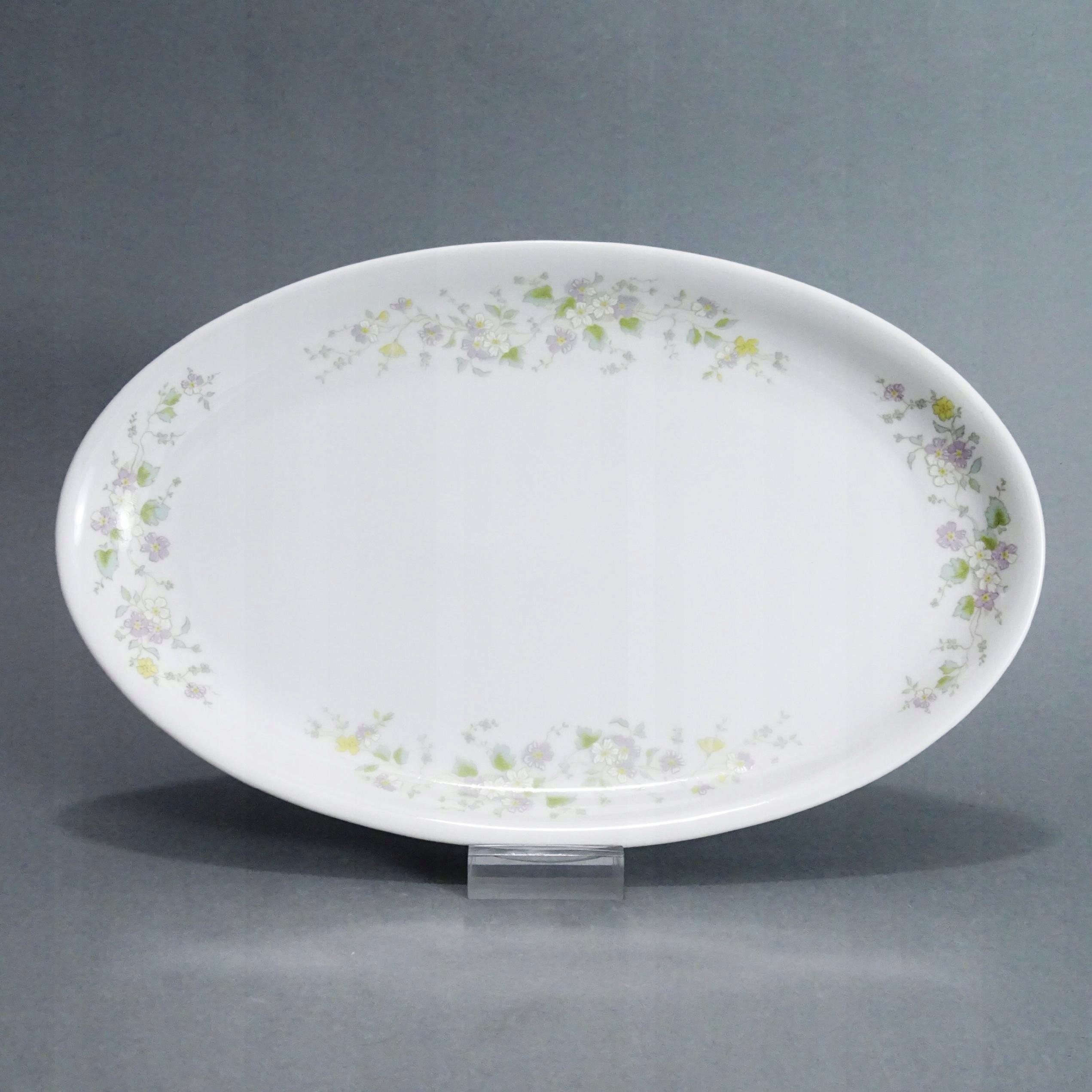 Красиве блюдо з білої порцеляни з ніжним квітковим орнаментом