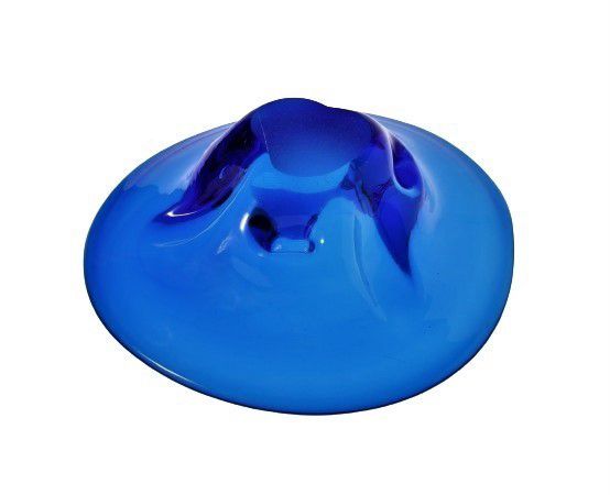 Фруктова тарілка з ручного формування, двошарового скла, пофарбованого в кобальт зсередини. Чехословаччина, друга пол 20 століття