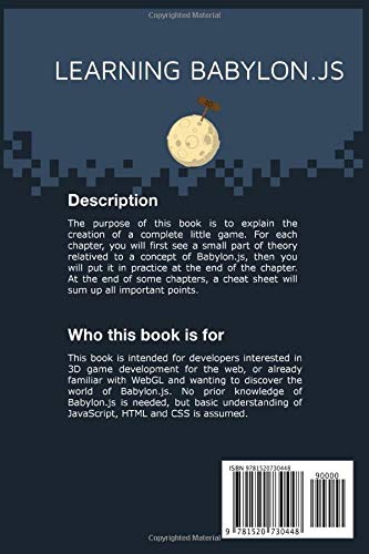 Опис книги Ви хочете почати створювати ігри з Webgg? Фіолетово цієї книги полягає в тому, щоб пояснити створення повної маленької гри. Для кожної глави ви спочатку побачите невелику частину теорії, що відноситься до концепції Вавилона.js, тоді ви поставите її на практику в кінці глави. Забронюйте повністю сумісну з Babylon.js v2.5!