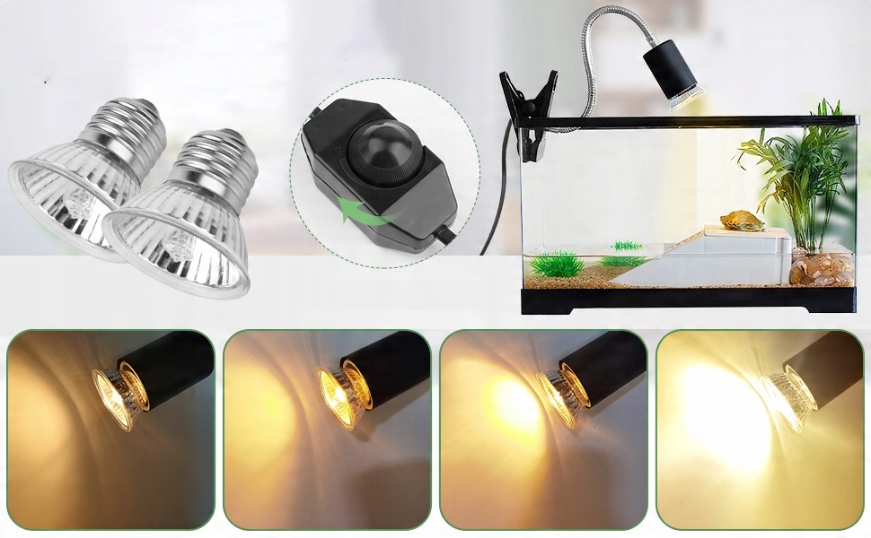 - - перемикач може регулювати яскравість і температуру, а відстань нагрівальних світильників може бути відрегульована залежно від потреб у потребах рептилій у різний час. Сонячна лампа - це оптимальний вибір для цілих денних рептилій.