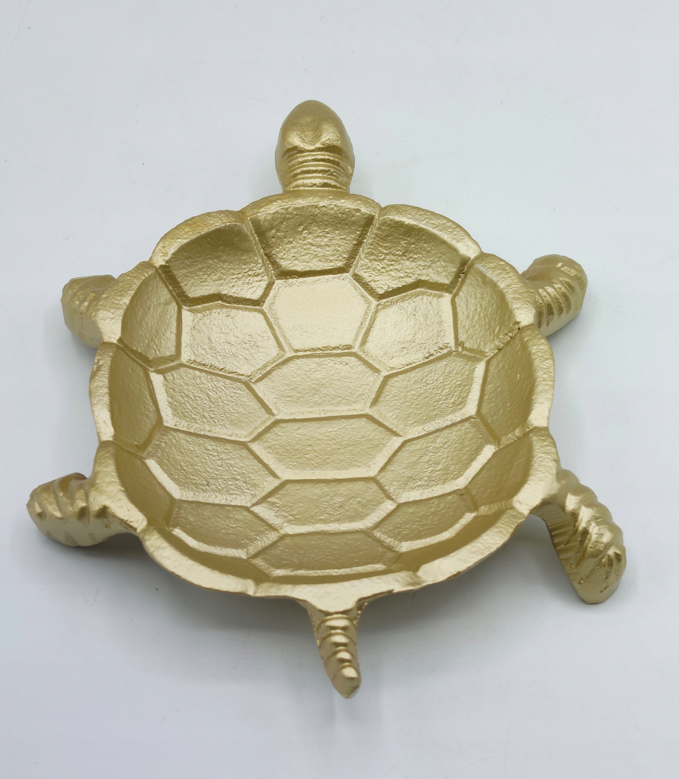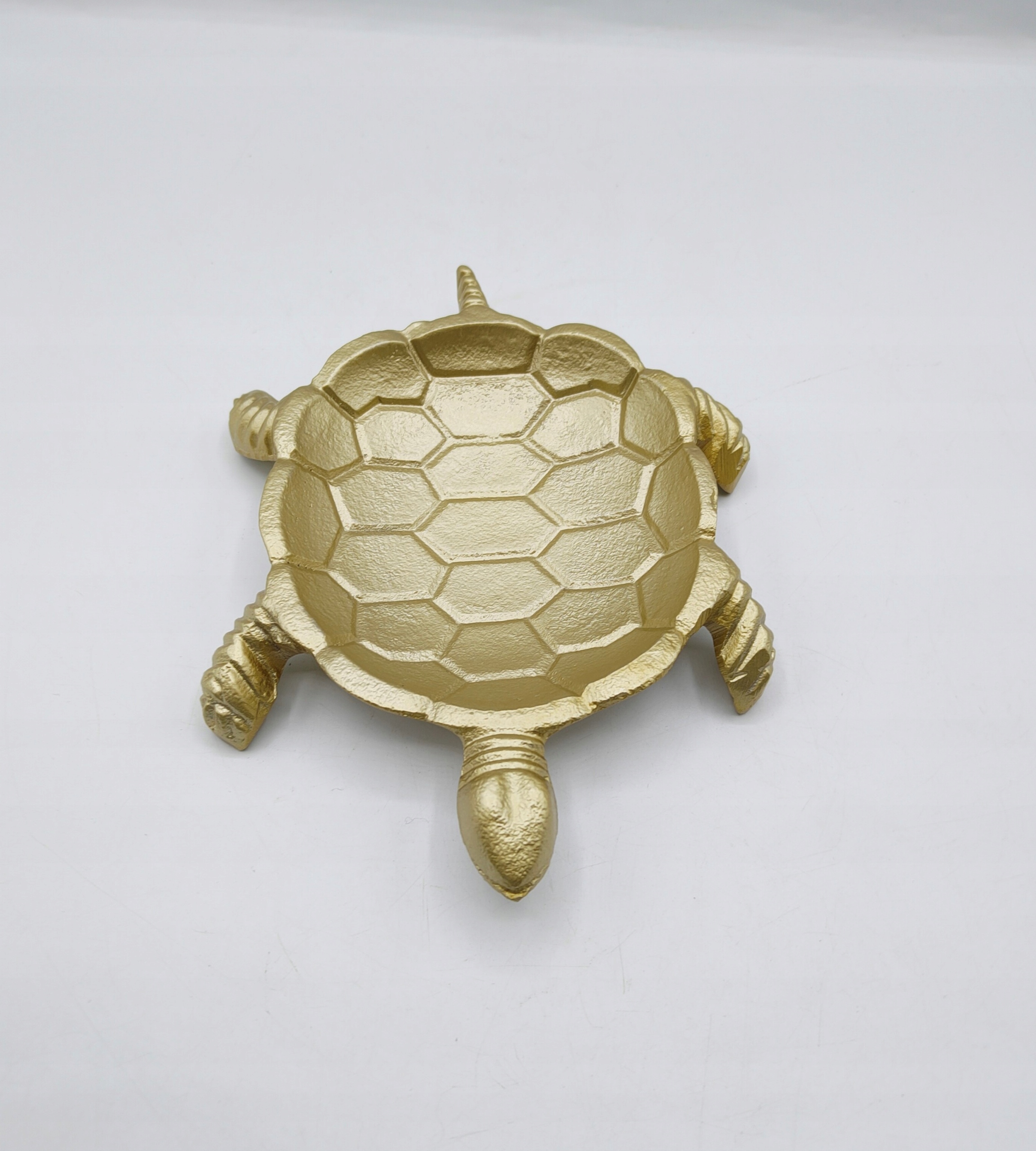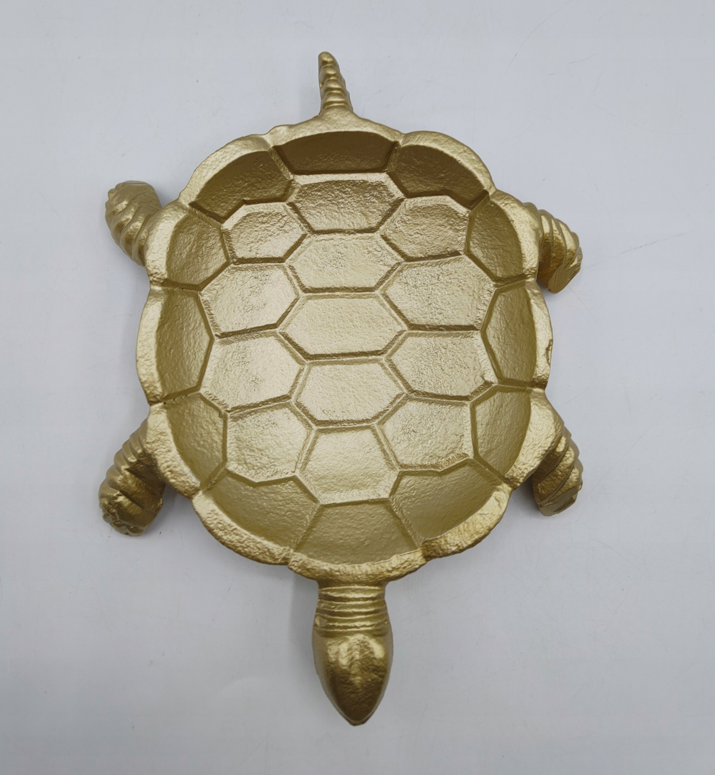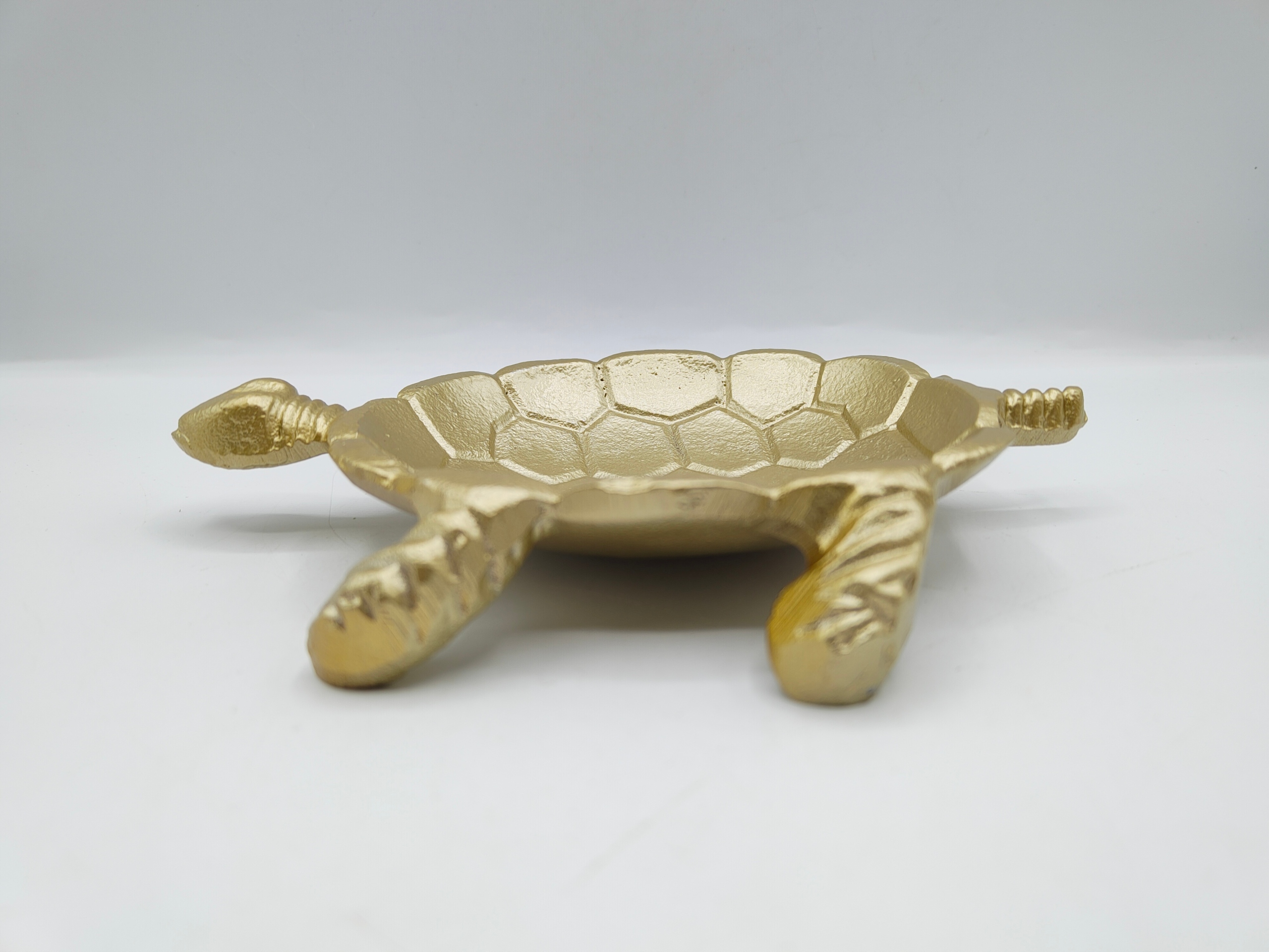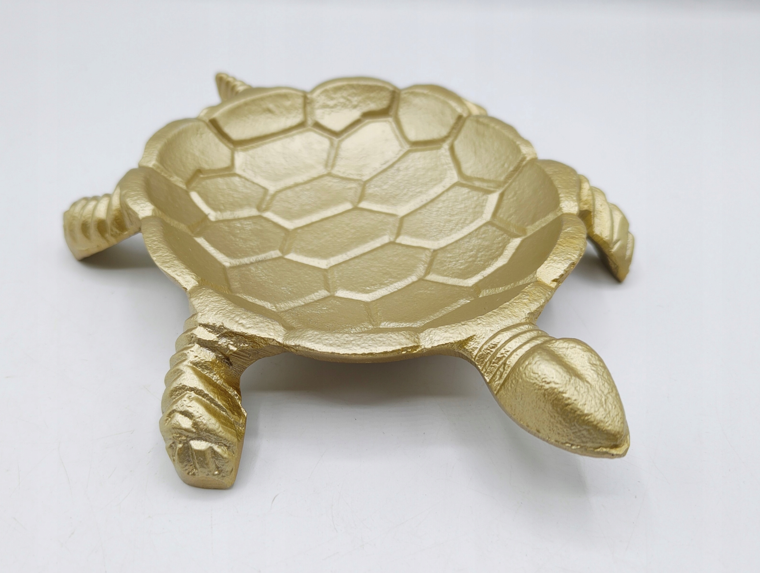 Черепаха виготовлена з нержавіючого металу (імовірно, литий алюміній, пофарбований золотом)/ Розміри: 18 см/14 см/3 см, вага 180 грамів. Черепаха в житті виглядає так само красиво, як і на фотографіях. Його можна використовувати як підставку або як колекційну фігурку. РЕКОМЕНДУЮ.