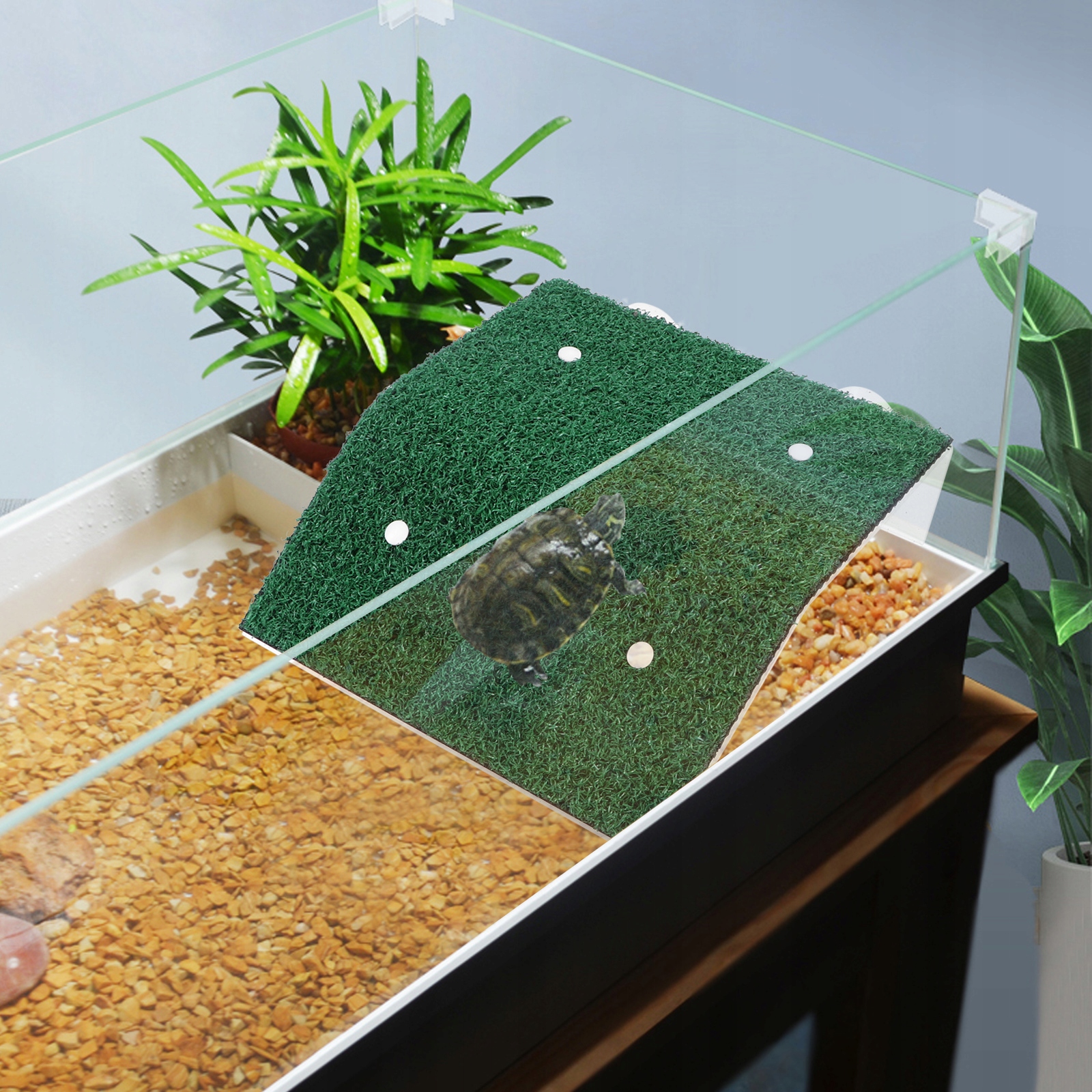 ✅, виготовлений з платформи PP для нагрівальних черепах, міцний і міцний. Анти -слайп, легко підніматися на тварин, як справжня галявина.