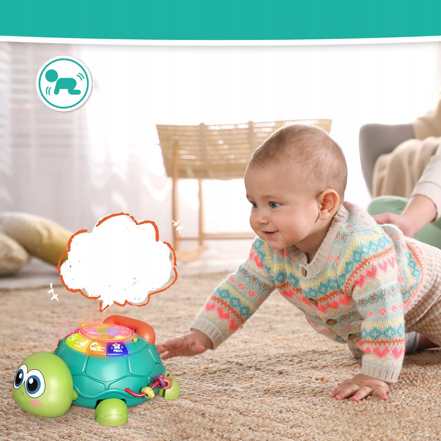 ЧЕРЕПАШКА ІГРАШКА ДЛЯ ДІТЕЙ, ЧЕРЕПАШКА ДЛЯ ПОЛЗАННЯ ПІД МУЗИКУ, РОЗВИВАЮЧА ІГРАШКА