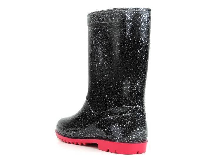 Черевики Wellington виготовлені торговою маркою American Club. Взуття виготовлено з міцної гуми, завдяки якій вода вільно стікає по ньому. Всередині текстиль. Веллінгтони мають шнурок у верхній частині верху, який допомагає захистити ногу від потрапляння води всередину взуття. Товста підошва завдяки своїй конструкції запобігає неконтрольованому ковзанню. Верх прикрашений блискітками та великим червоним бантом.