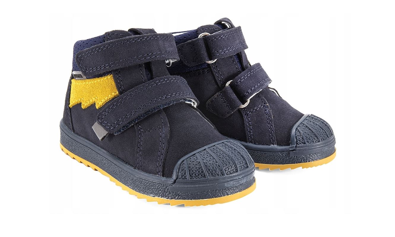 Взуття BARTEK для хлопчика на осінній сезон темно-синьо-жовтих тонів. Взуття призначене для найменших покупців, маленьких шукачів, дослідників, які люблять проводити багато часу на свіжому повітрі та заглядати в кожен закуток.