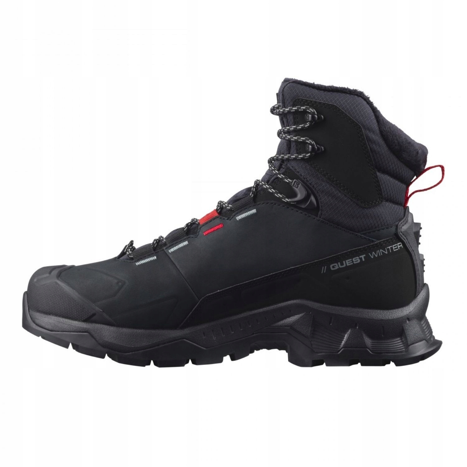 Високоякісне зимове взуття SALOMON Quest Winter TS CSWP, оснащене водонепроникною мембраною ClimaSalomon™ та утеплювачемThinsulate™ 400g з комфортом і захистом навіть у дуже несприятливу та холодну погоду. Високий виріз у поєднанні з шасі ADV-C захищає щиколотку, не обмежуючи руху, а підошва Winter Contagrip забезпечує чудову стабільність на різноманітній місцевості.