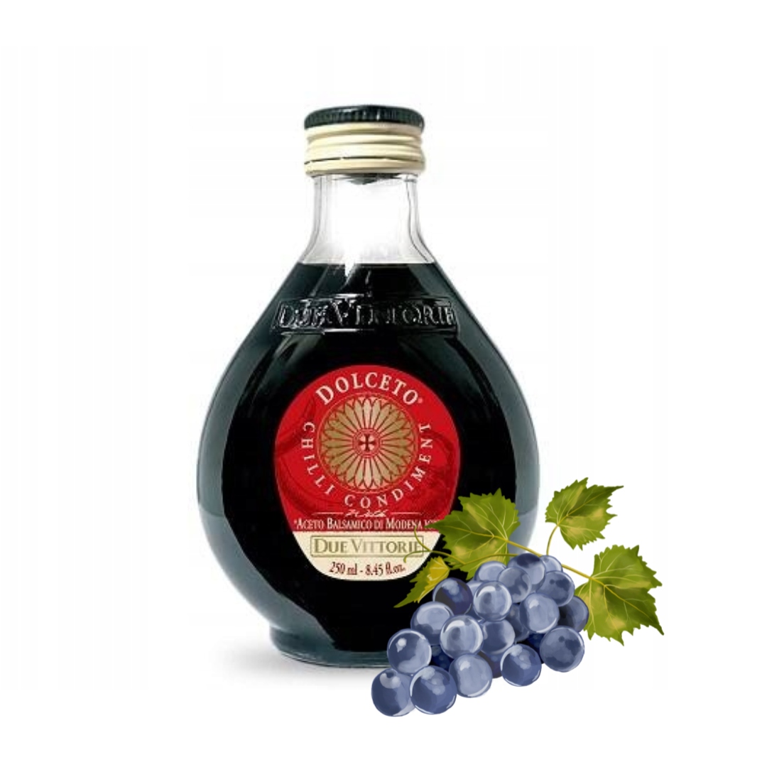 інгредієнти: варений виноград, бальзамічний оцет від Modena IGP (винний оцет, варений виноград повинен, барвник: E150D, містить сірку) 40%, чилі в порошку1%, натуральний аромат