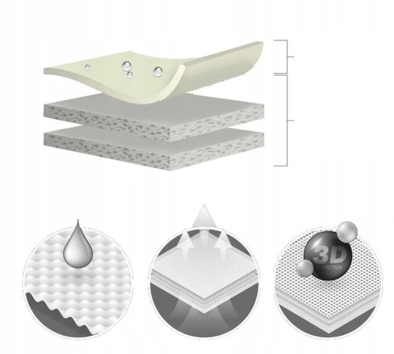 Бічні сторони чохла 2 шарові, виготовлено з >двошарового флізеліну SPUNBOND. Боковини чохла високо паропроникні та непроникні. Завдяки такій конструкції водяна пара і волога постійно відводяться назовні, а під час дощу вода стікає по бічних стінках кришки, не проникаючи під кришку. Завдяки цьому поєднанню водонепроникної верхньої частини з високо паропроникними боками чохол є повністю водонепроникним і паропроникним.