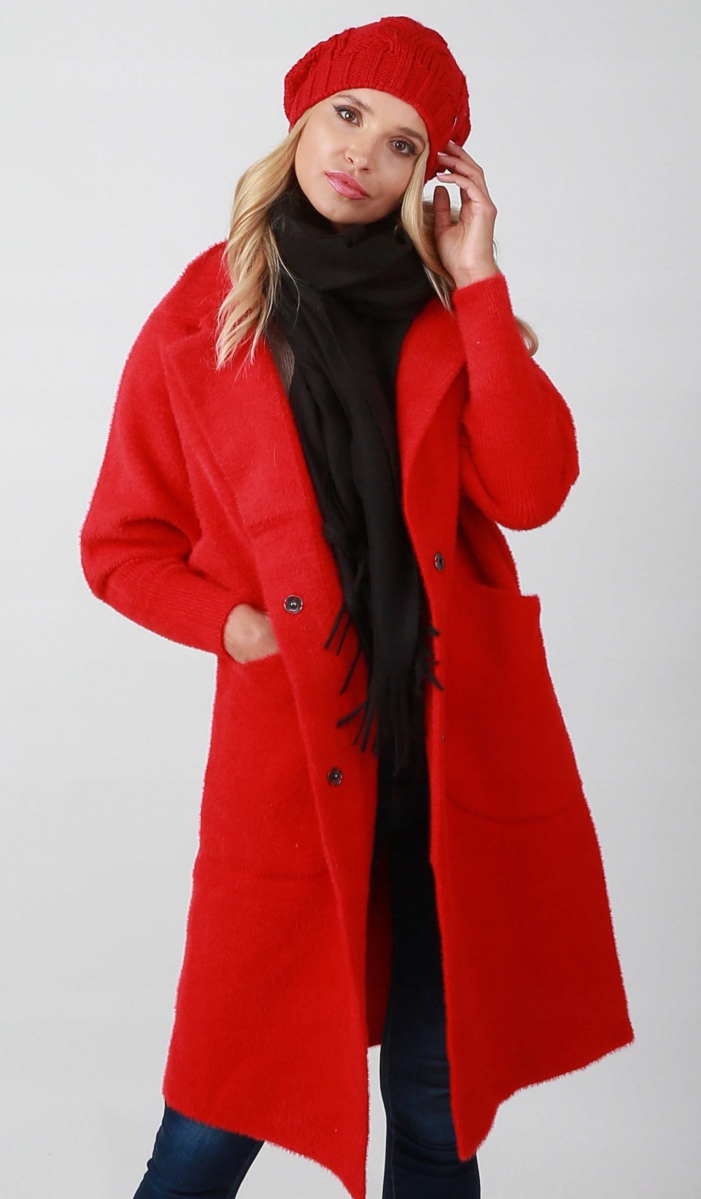 Червона жіноча в'язана шапка СМЕРФЕТКА - А4