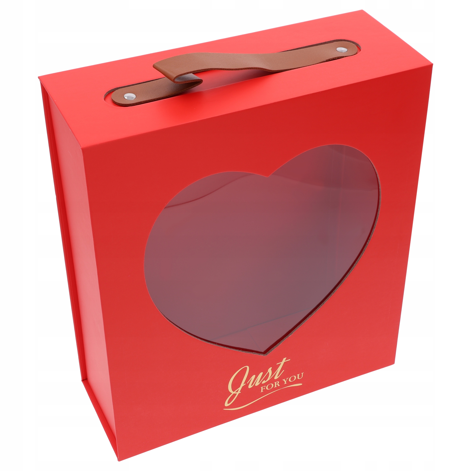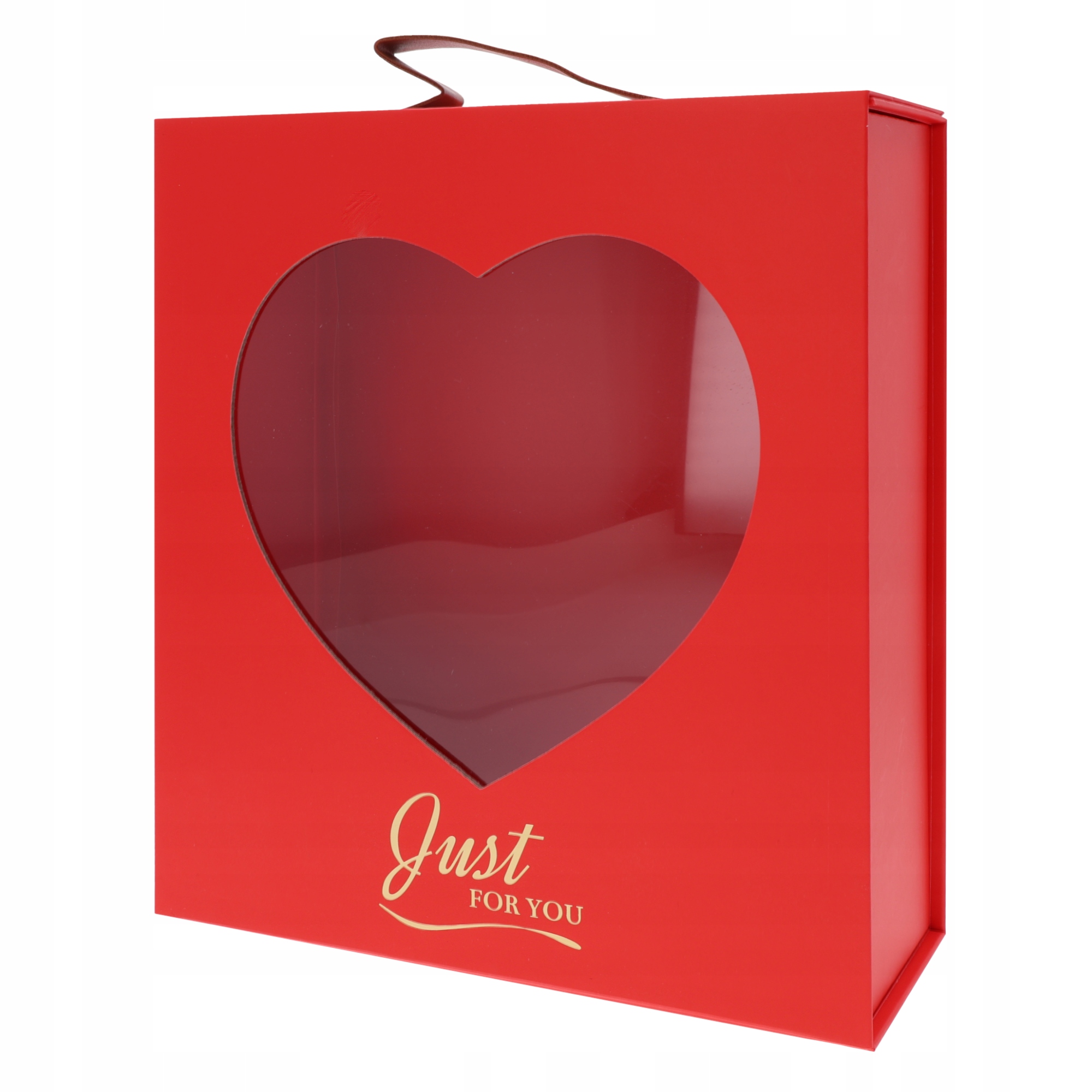 Вражаюча подарункова коробка з прозорим серцем -урядом та золотим написом просто для вас.