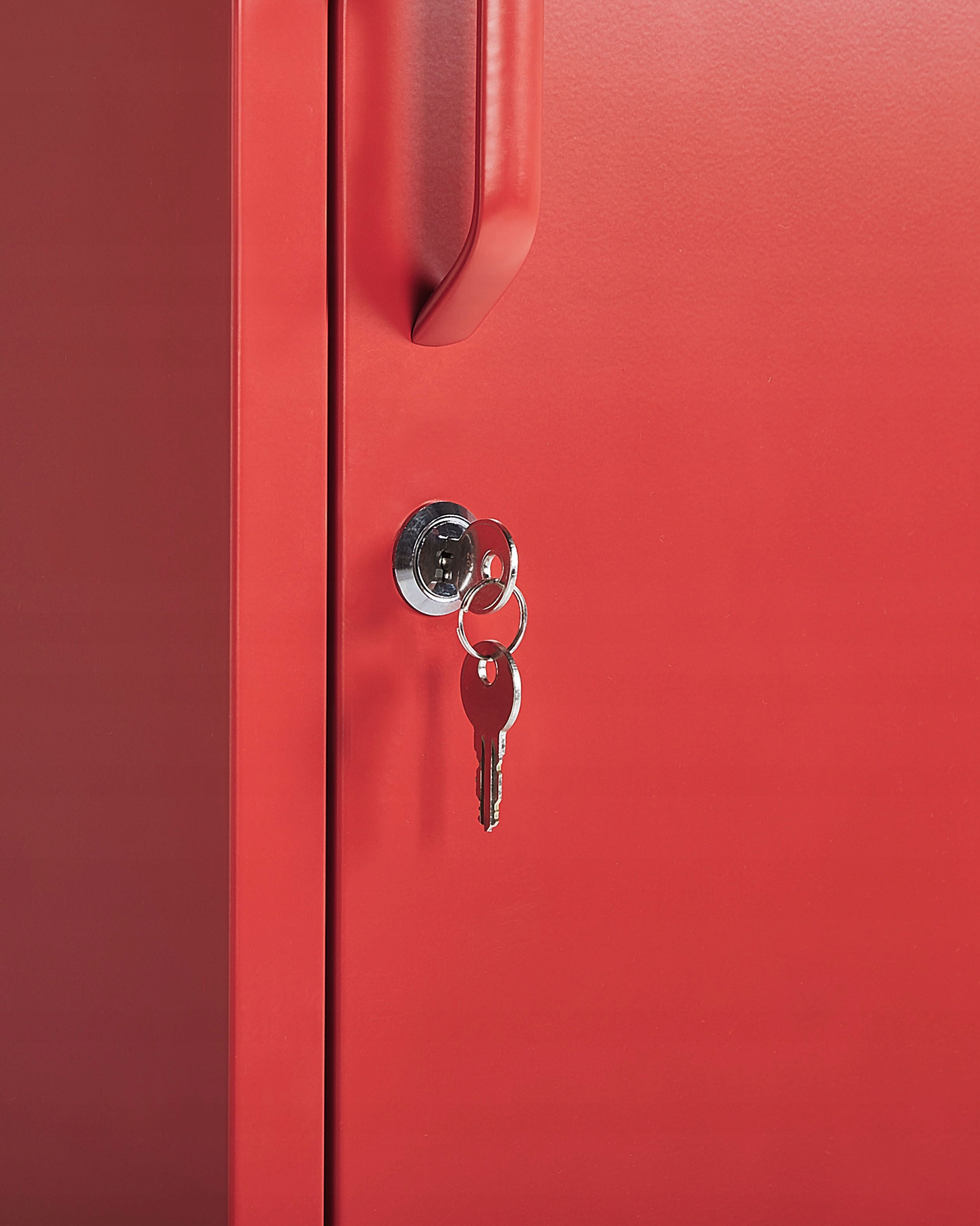 Червона металева офісна шафа з ключем