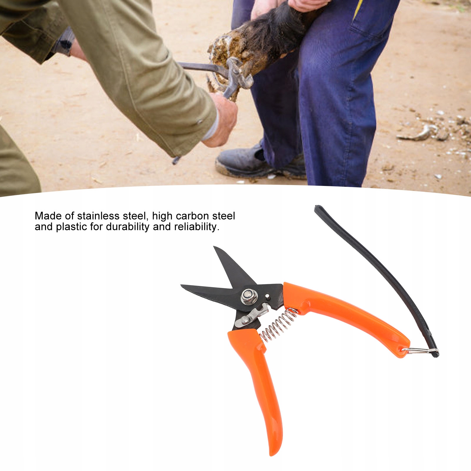 1. Міцні матеріали: ножиці для копит виготовлені з нержавіючої сталі, високовуглецевої сталі та пластику для довговічності та надійності. Ці матеріали можуть витримувати тиск і силу обрізання копит, забезпечуючи тривале використання ножиць.