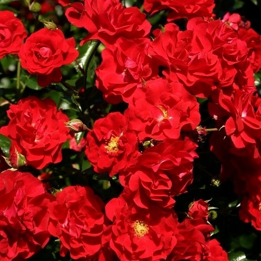 - Інтенсивно червоні, напівзабезпечені квіти, які з’являються в рясних групах.