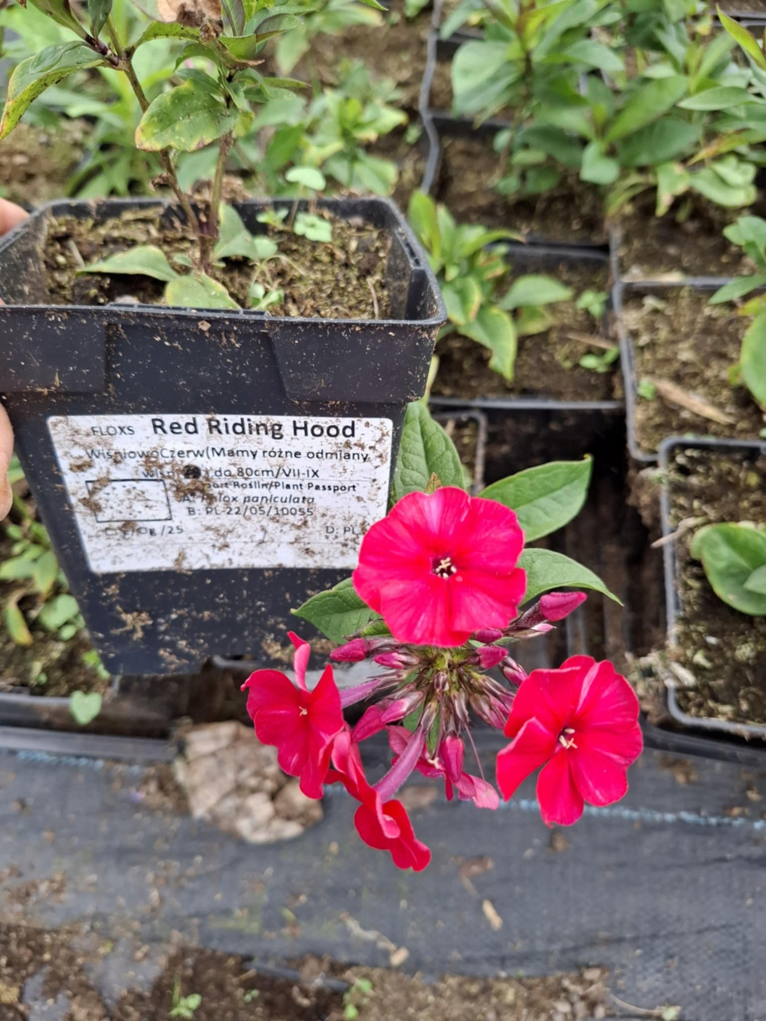 Червона шапочка — різновид високорослих флоксів, тому що квітуча рослина виростає до 80 см. — сорт із запашними червоними квітками, зібраними у великі щільні суцвіття, розташовані на жорстких пагонах, які слід видаляти після цвітіння, щоб продовжити період цвітіння. Найкраще росте і цвіте на сонячних місцях і на проникному, родючому, вологому ґрунті.